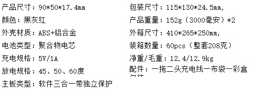 Технические характеристики продукта 102*55.5*16.6mm、90*50*17.4mm