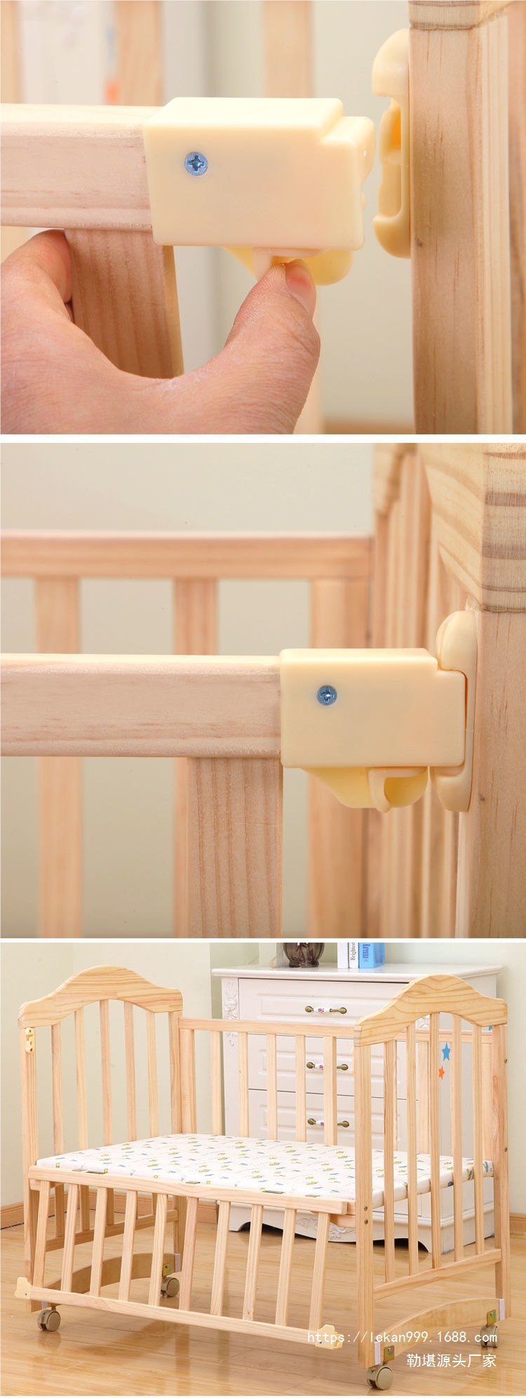 Кроватка из массива дерева, без краски, с возможностью сборки