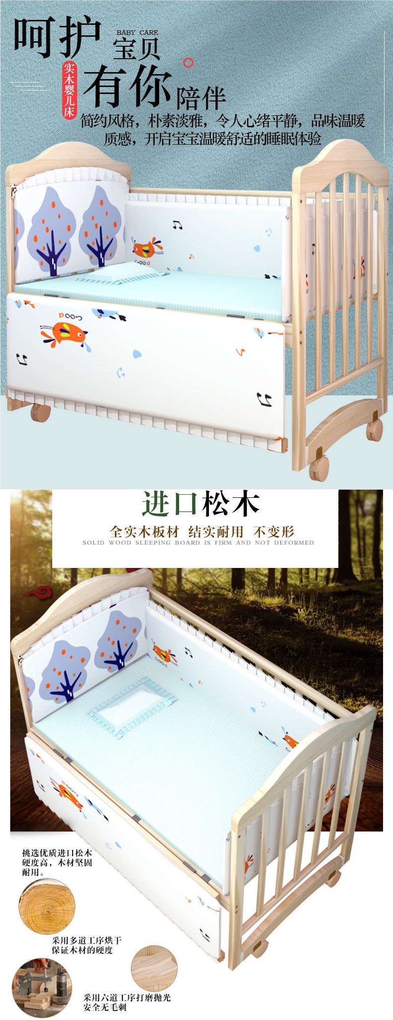 ![]() | Bed + mosquito net + five-piece set luxury blue whale | Single layer crib (94*55cm) 0-2 years old | ¥265.6 / ≈ 3 231 ₽ | 801 | 5983839630597 | |