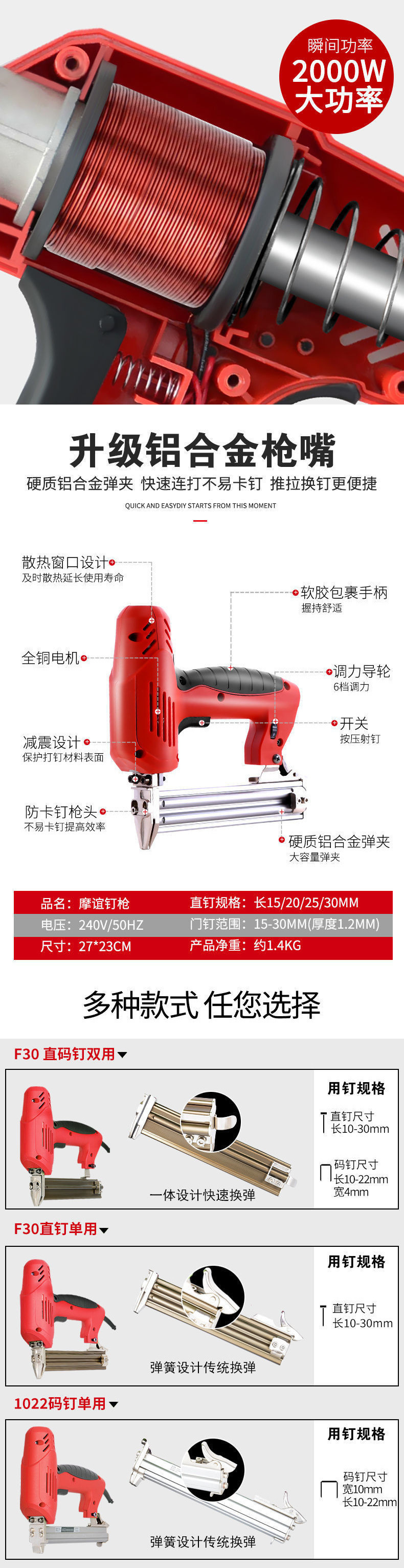 Электрический гвоздезабиватель, пневматический гвоздезабиватель F30, прямой гвоздезабиватель, двухцелевой гвоздезабиватель для дверей и столярных работ