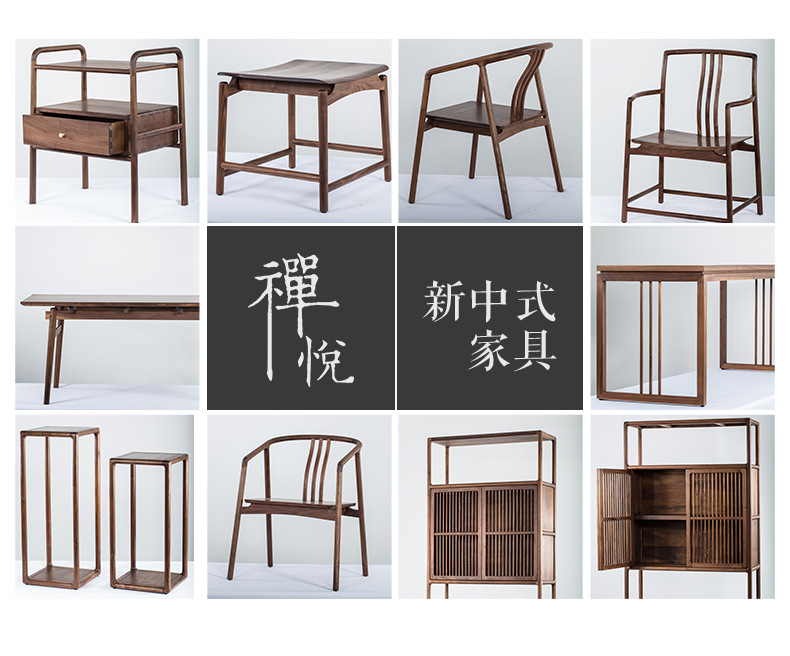 Стол из черного ореха Minmu Новый китайский стиль Комбинация стола и стульев
