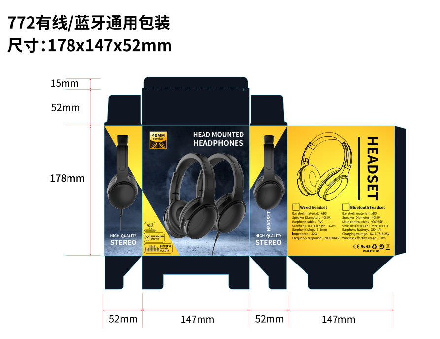 Новые накладные наушники с проводным управлением, складывающиеся и поворотные, высококачественные музыкальные наушники, прямая поставка из Шэньчжэня