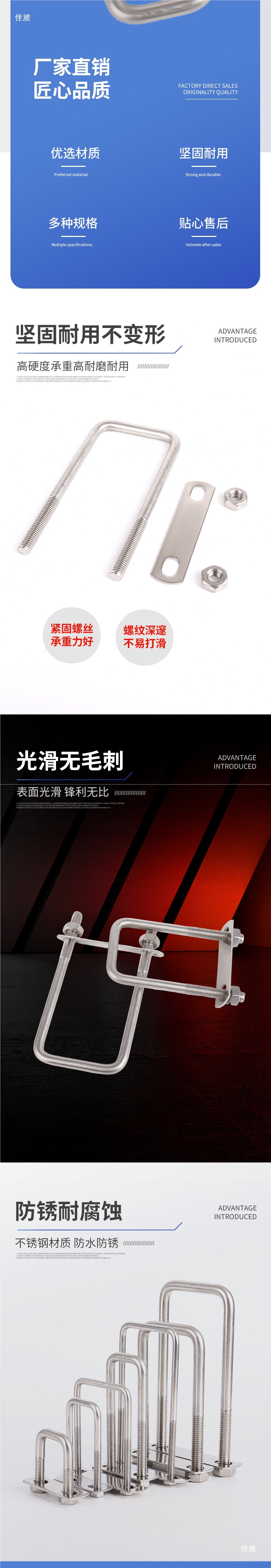 U-образная скоба из нержавеющей стали, квадратная, для крепления труб