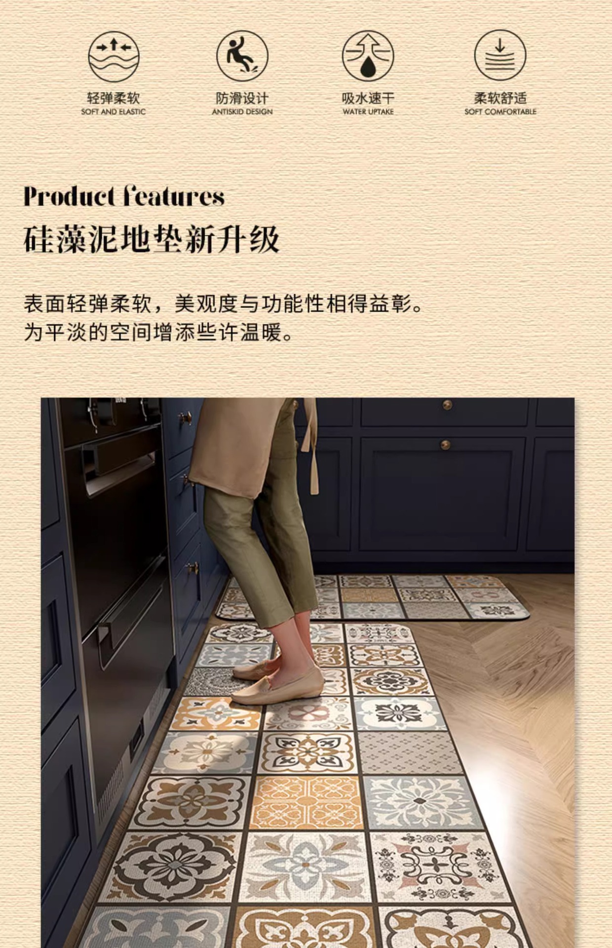 Коврик для кухни Fengshang диатомовая грязь масло-отталкивающий противоскользящий коврик моющийся водонепроницаемый специальный коврик для дома впитывающий