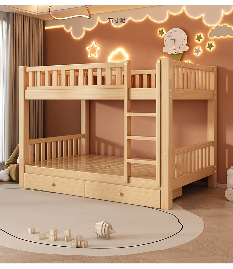 Двухъярусная кровать из массива дерева, для маленьких квартир, детская кровать