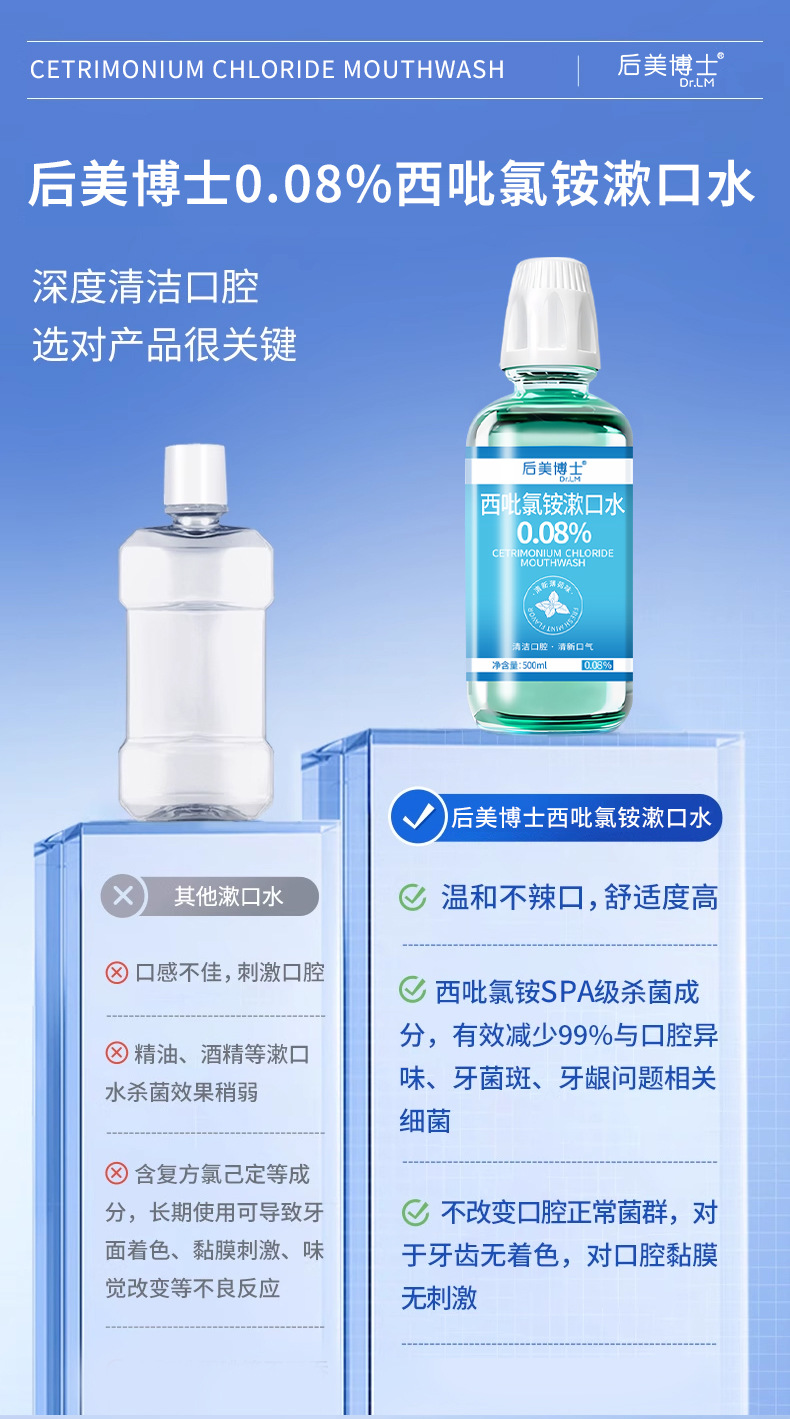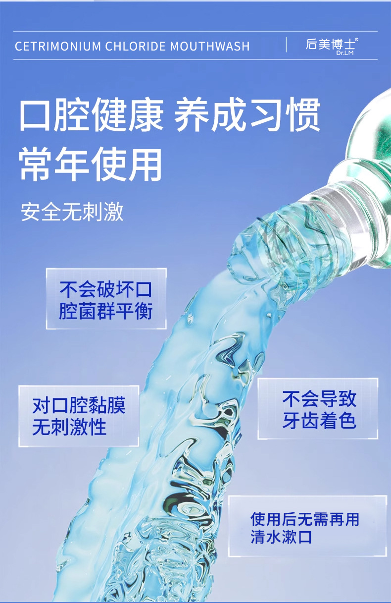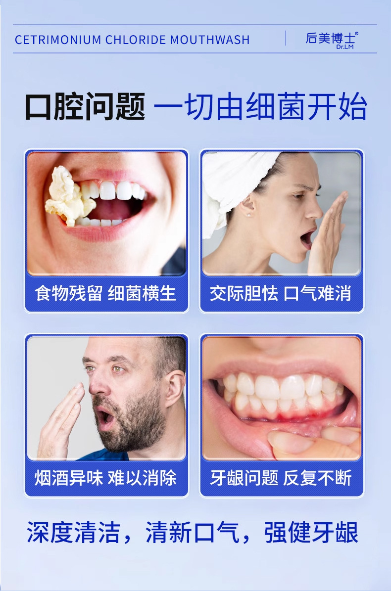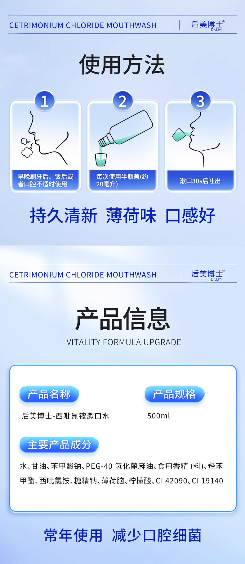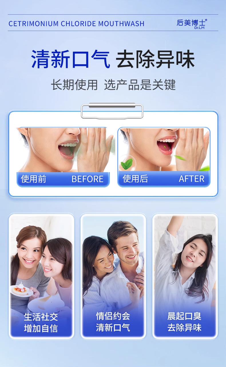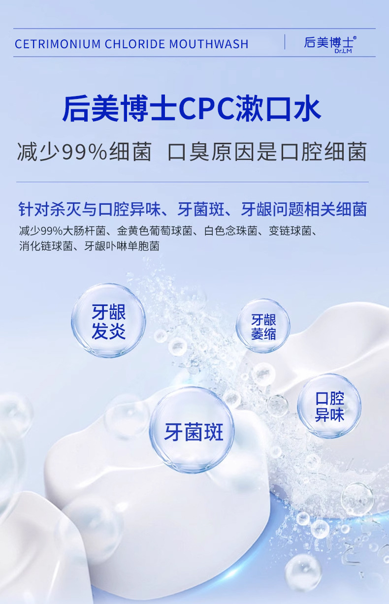 Полоскание рта Dr. Houmei с хлористым аммонием, 0.08%, дезодорирующая защита десен, антибактериальное, свежесть дыхания