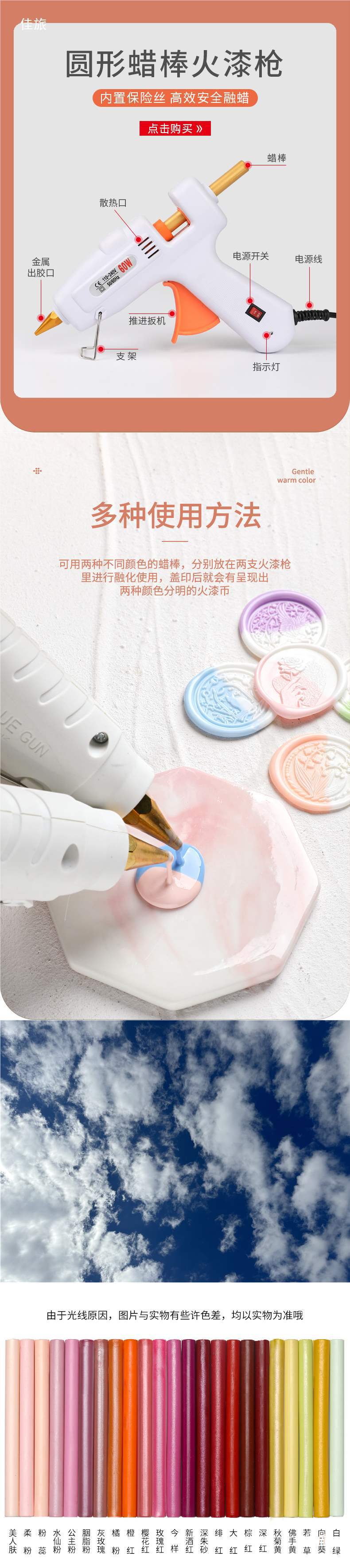 68-цветный винтажный восковый печать, яркие цвета, печать воска, круглая восковая палочка, пистолет для воска