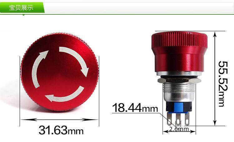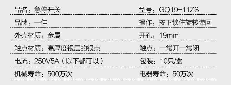 Yijia Металлическая Нержавеющая Сталь Лифта Кнопка Остановки Экстренной Ситуации 19мм Экстренная Остановка Неисправность Gq19-11Zs Самозапирающаяся