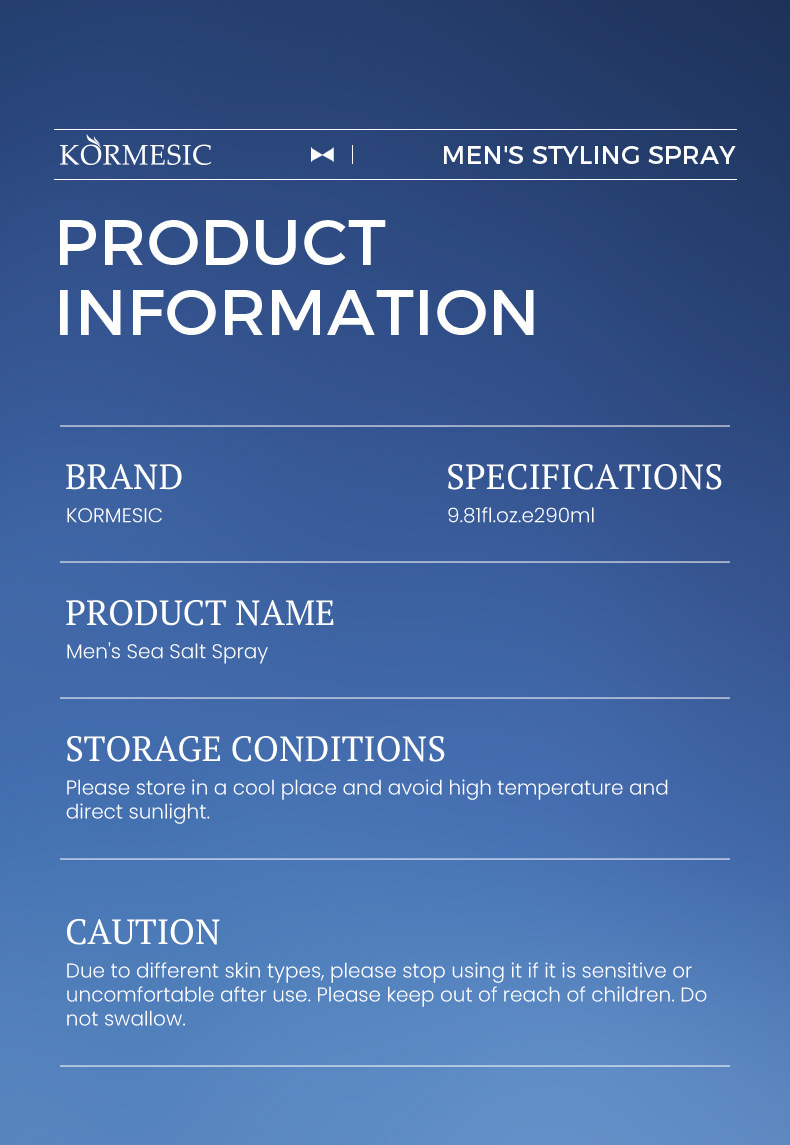 Спрей Kormesic для мужчин освежающий и увлажняющий морская соль оптовая поставка кросс-граничного экспорта
