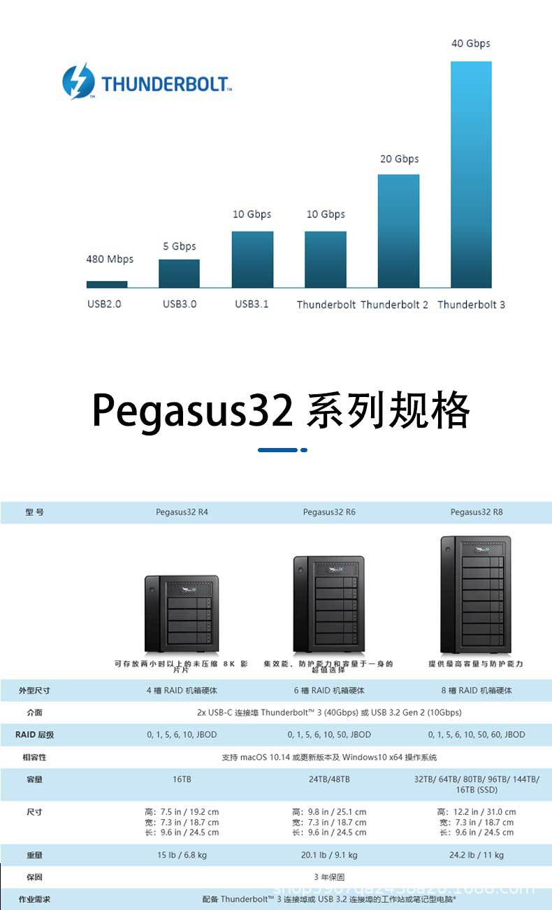 Подходит для Promise Thunderbolt 3 Хранилище Pegasus32R4 4-Дисковый Thunderbolt 3/Интерфейс Диск Массив 16t