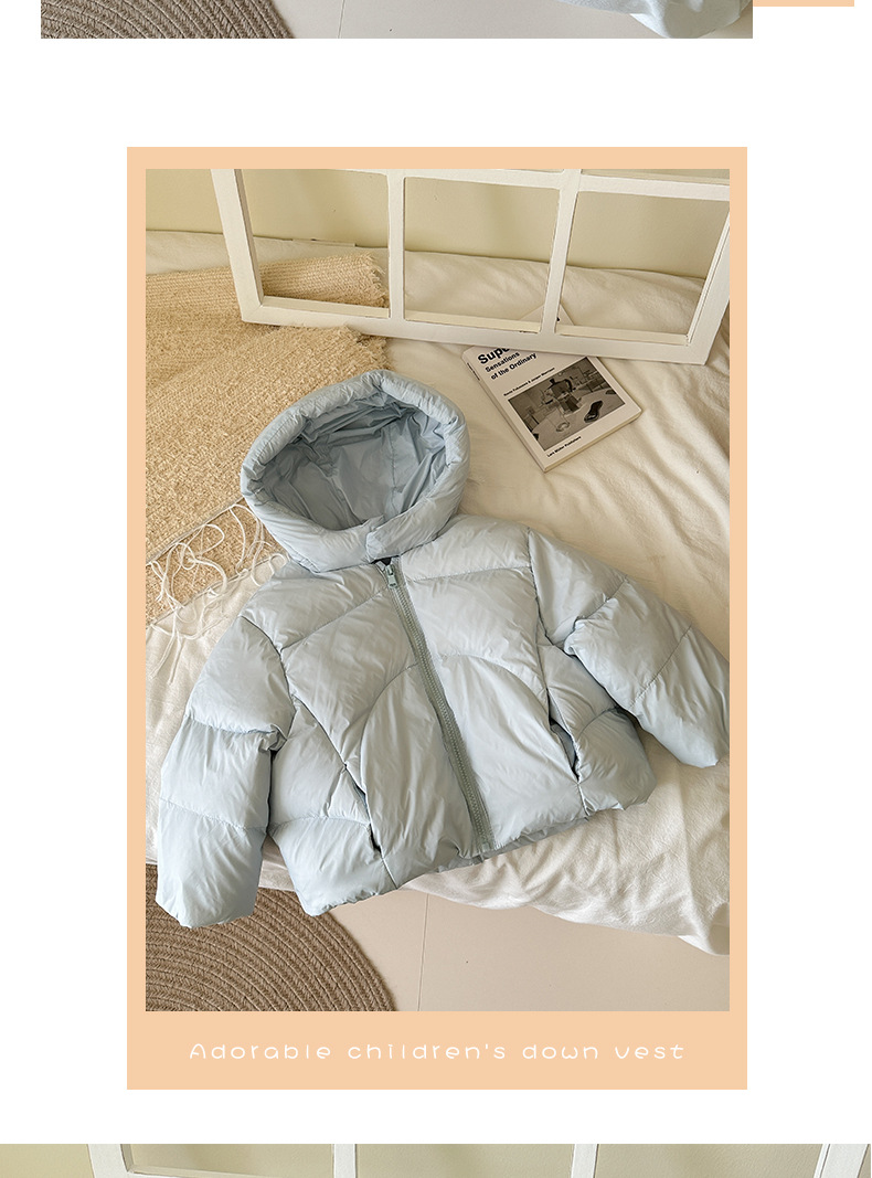 Куртка из пуха для детей, новый корейский стиль осень-зима 2025 года, куртка с капюшоном для мальчиков и девочек из белого утиного пуха