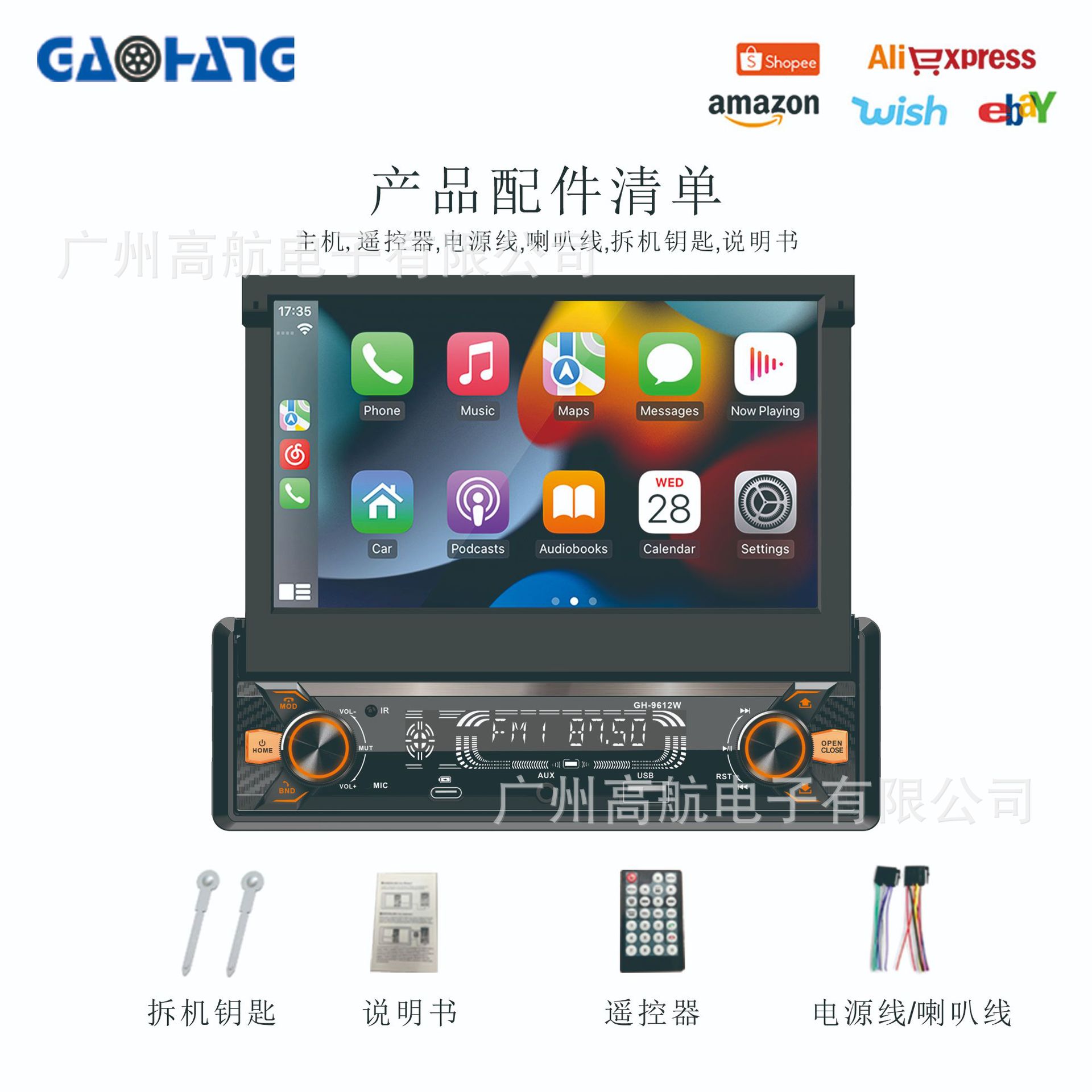 📦 | 7inch car electric retractable mp5 player + wired carplay + android auto | 2шт: ¥270.00, 500шт: ¥250.00, 1000шт: ¥210.00 | 400 | 5819604388779 |