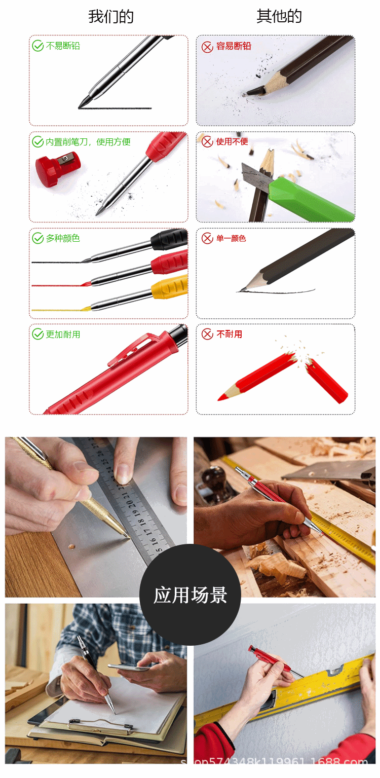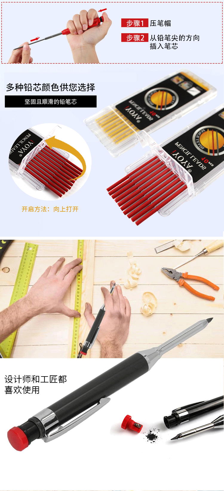 Качественный и прочный металлический карандаш для деревообработки, инструмент для глубокого маркирования, цветной грифель 2.8мм