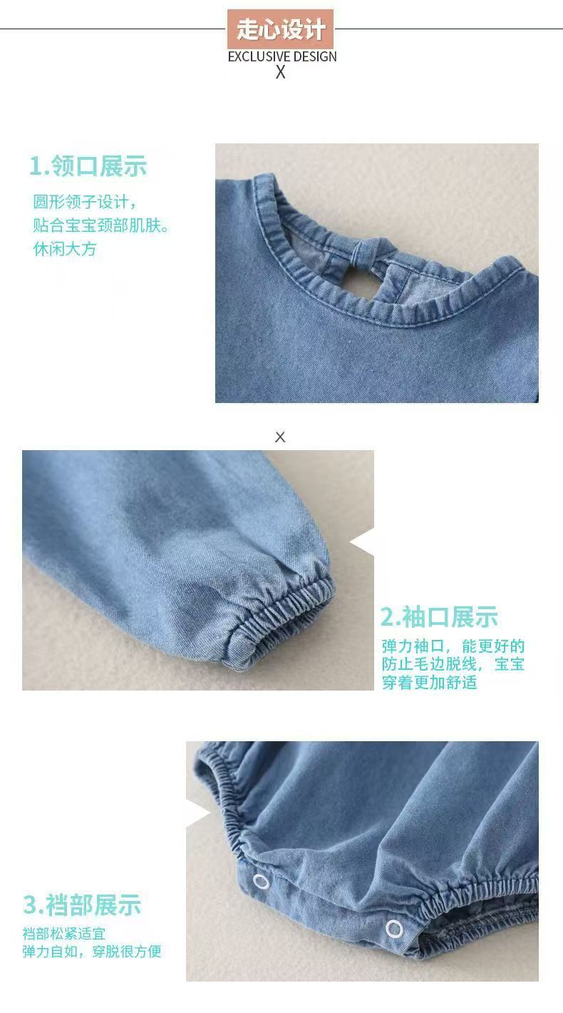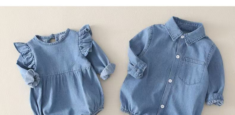 Футболка с длинным рукавом для малышей с треугольным воротником, джинсовый комплект для брата и сестры осень-зима