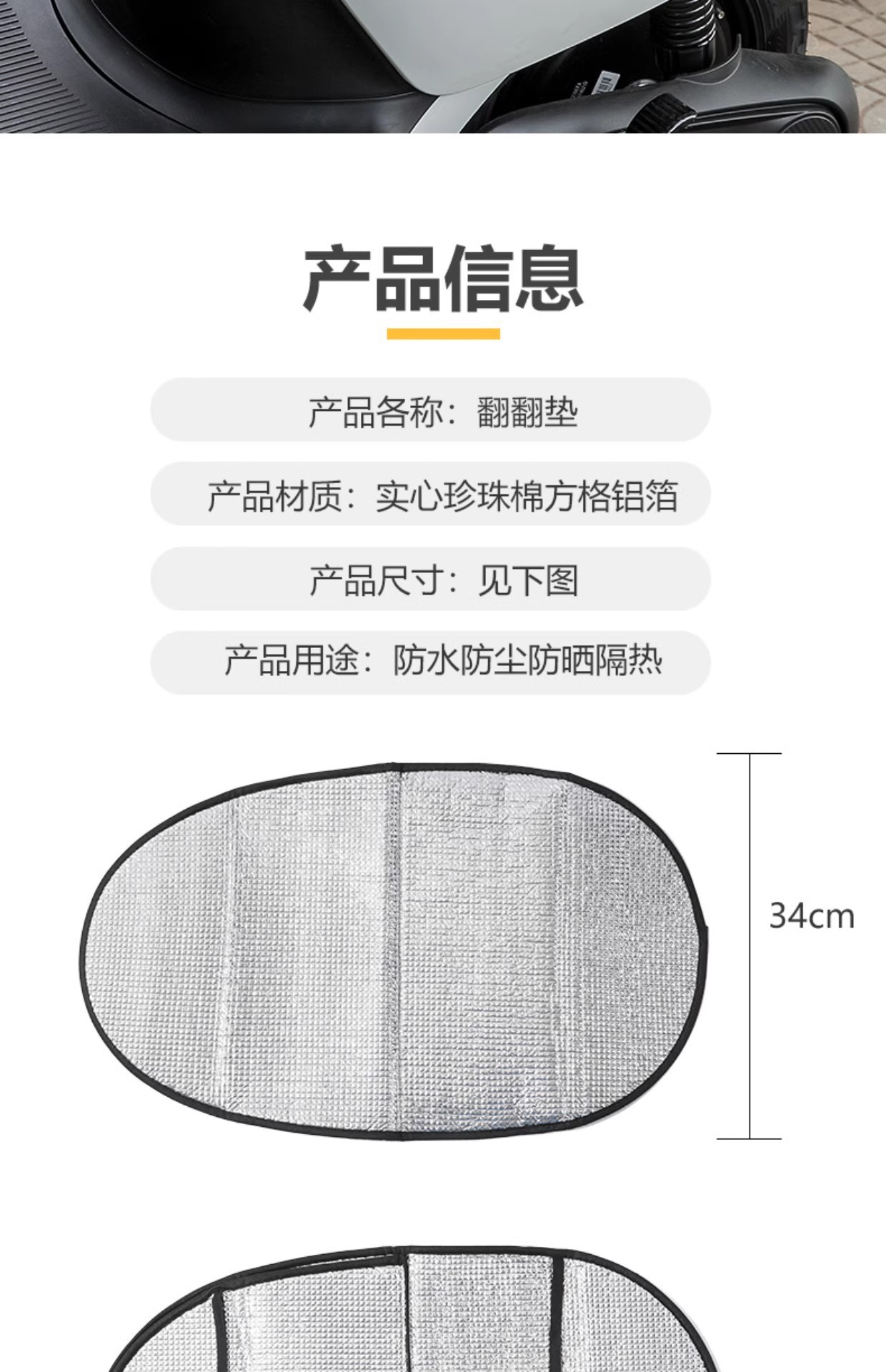 Солнцезащитная подушка для мотоцикла Electric vehicle sun protection mat, electric vehicle insulation pad, motorcycle sun protection seat cushion, battery car seat cushion sun protection, battery car seat cover waterproof sun protection, electric car seat cover sun protection and heat insulation