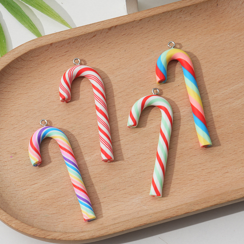 Большой Рождественский тростник Рождественская конфета Мягкая керамика Ювелирные аксессуары Кремовый клей Материал Серьги Подвеска с рогами гвозди