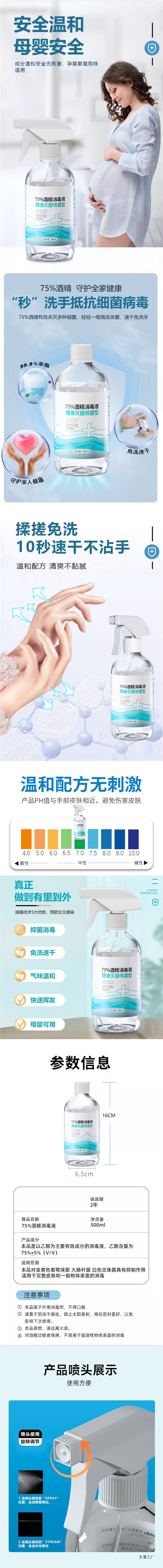 Дезинфицирующий спирт 75 градусов 500 мл, большая бутылка, дезинфекционный спрей, без мытья, 75% спирт