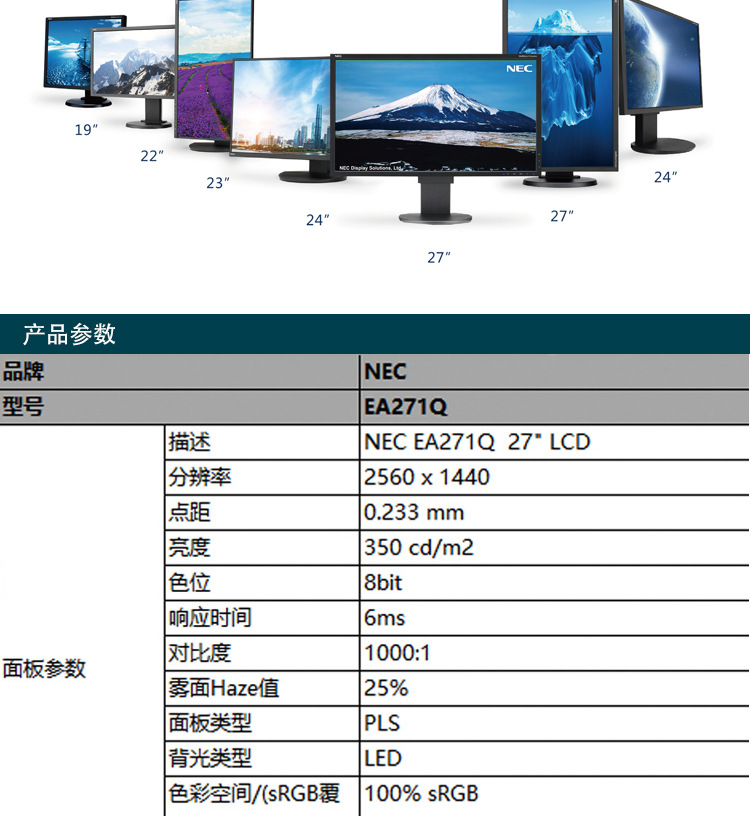 Nec Ea271Q 27 дюймов 16:9 широкий экран IPS панель 2K бизнес офис профессиональный LCD настольный