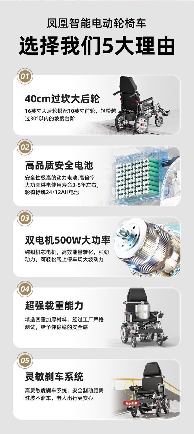 Электрическая инвалидная коляска Phoenix для пожилых, интеллектуальная, полностью автоматическая, складная медицинская четырехколесная коляска
