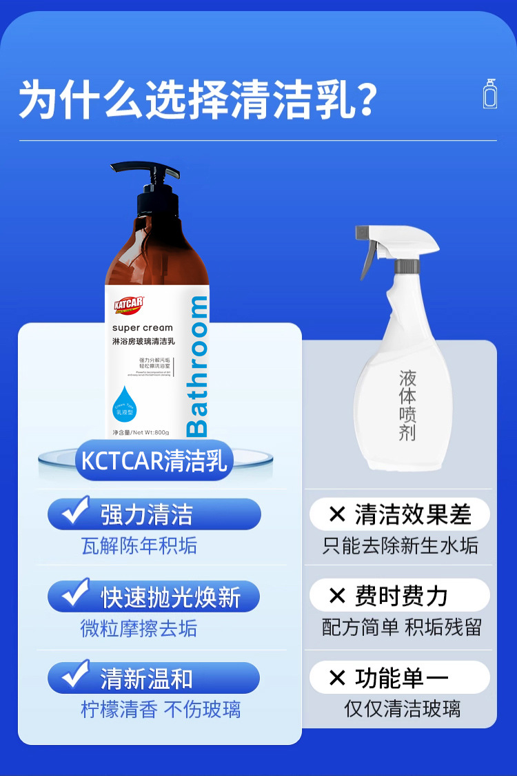 Чистящее молоко для стекол в ванной, многофункциональное