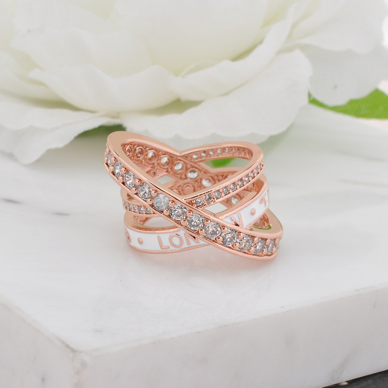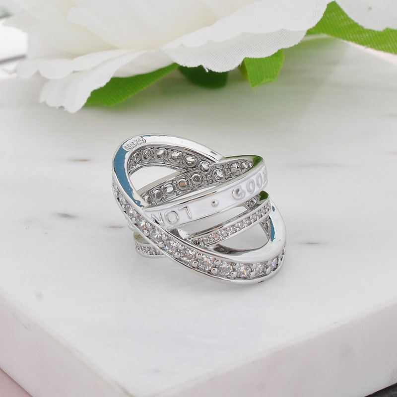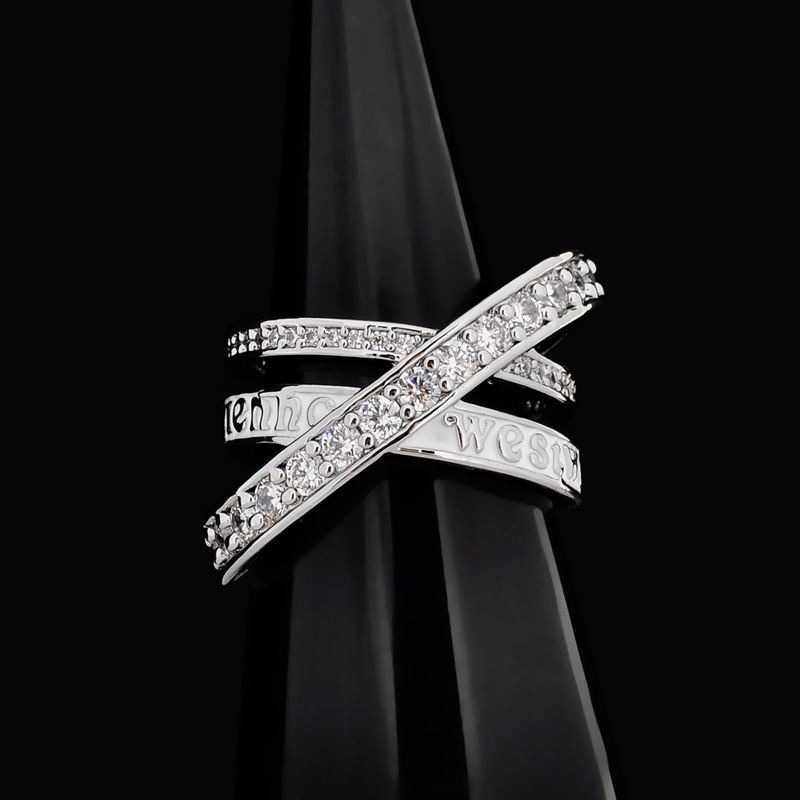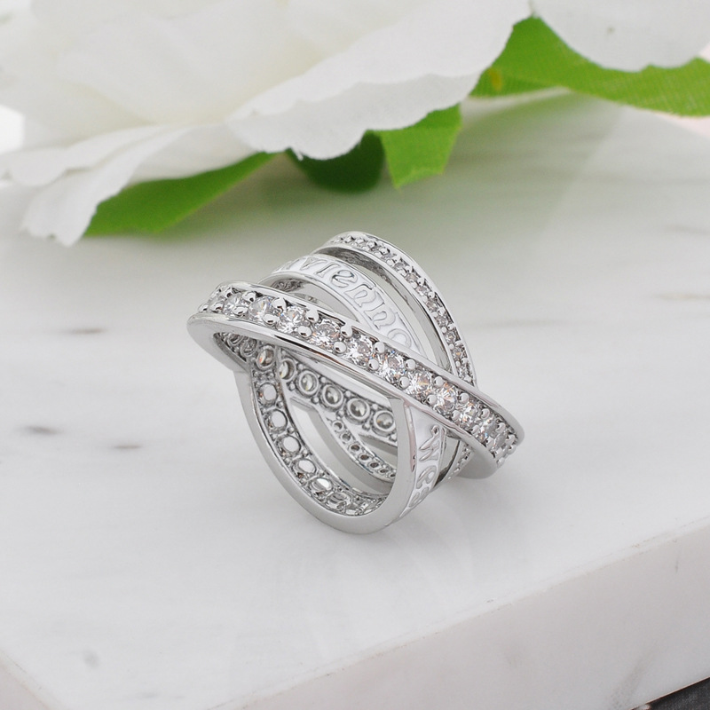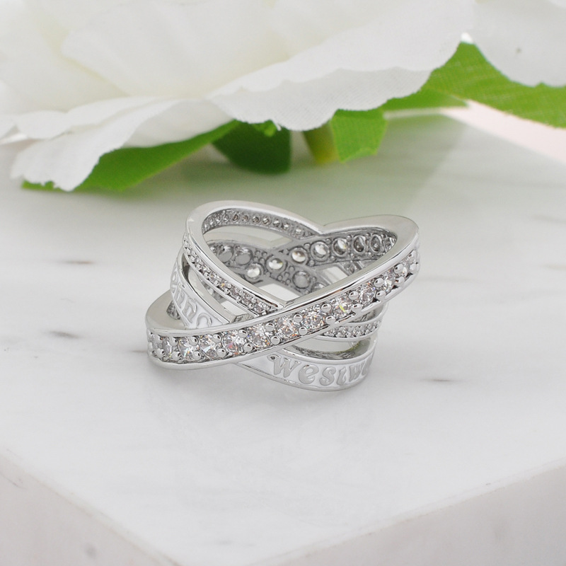 Кольцо с крестом из трех колец с полным покрытием алмазами, легкая роскошь, модное кольцо с бриллиантами