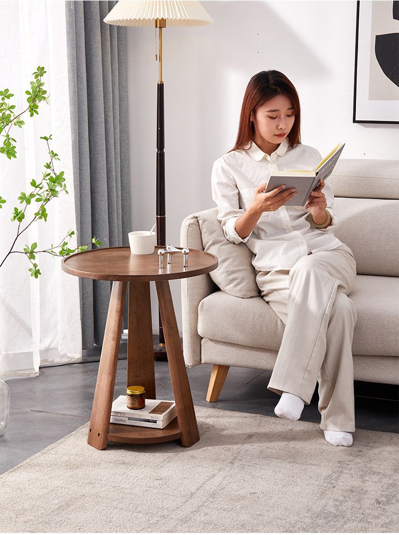 Легкий роскошный кофейный столик из массива дерева, столик у дивана, мини-хранилище, маленький круглый стол, для гостиной, полностью из массива дерева, прикроватный столик