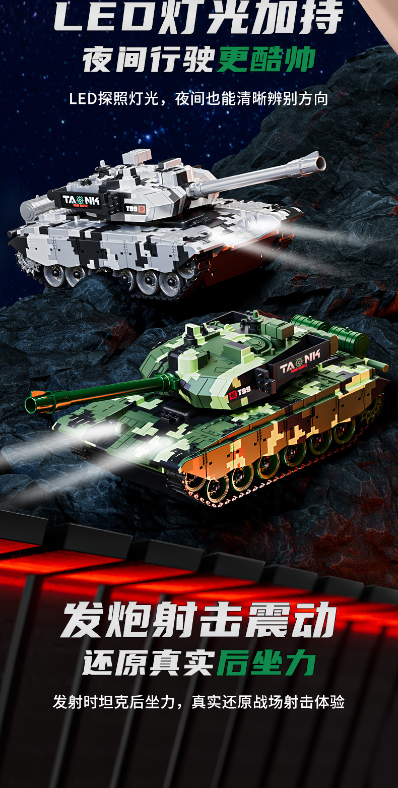 ![]() | Medium sound and light 7-channel t90 [camouflage green] mobile phone remote control + handle | Two sets of rechargeable batteries + remote control battery | ¥34.0 / ≈ 414 ₽ | 9998 | 5987433822593 | |