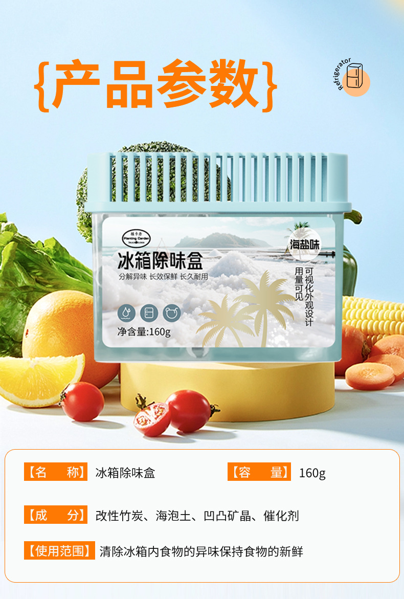 📦 | Refrigerator deodorizing box丨160g | 1шт: ¥2.80, 5000шт: ¥2.60, 10000шт: ¥2.40 | 968072 | 5986722434300 |