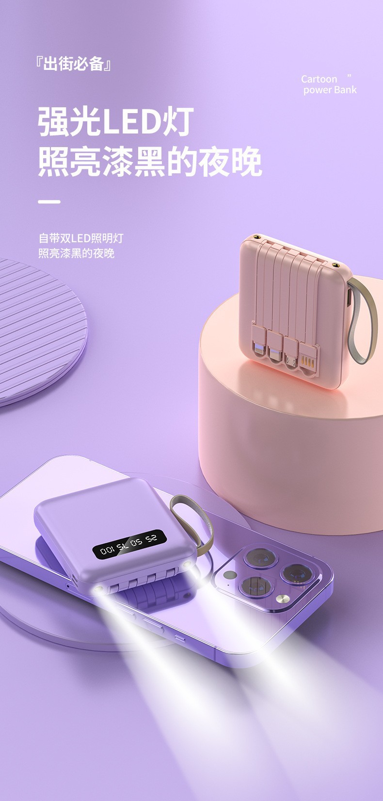 Функция Small and portable, With led flashlight, Comes with data cable, Digital display of power