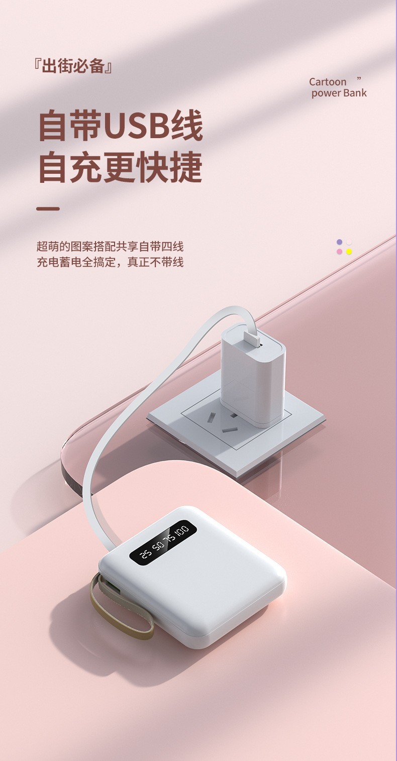 Оптовый мини-пауэрбанк с встроенным кабелем 20000 мА большой емкости компактный