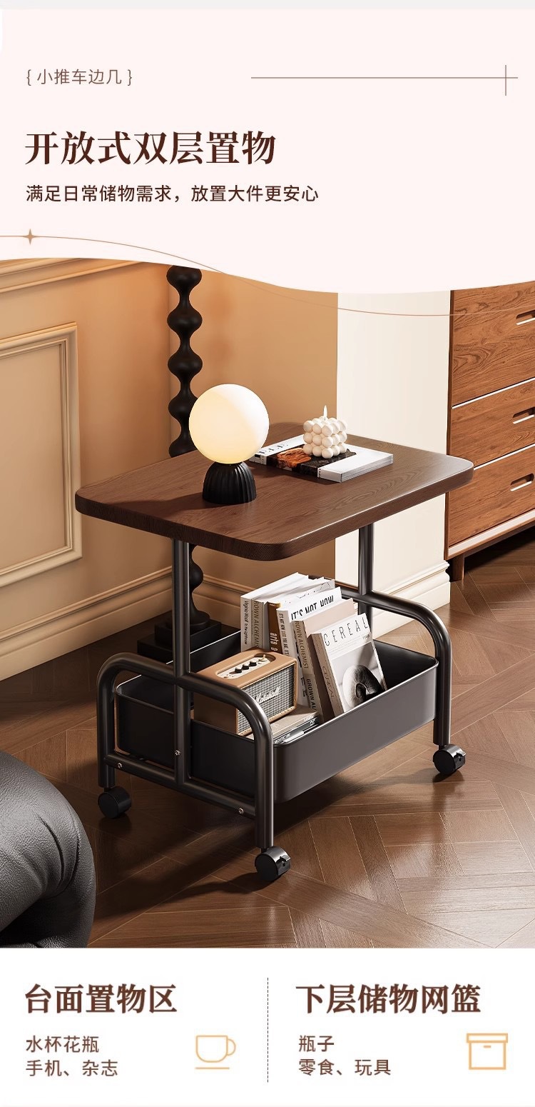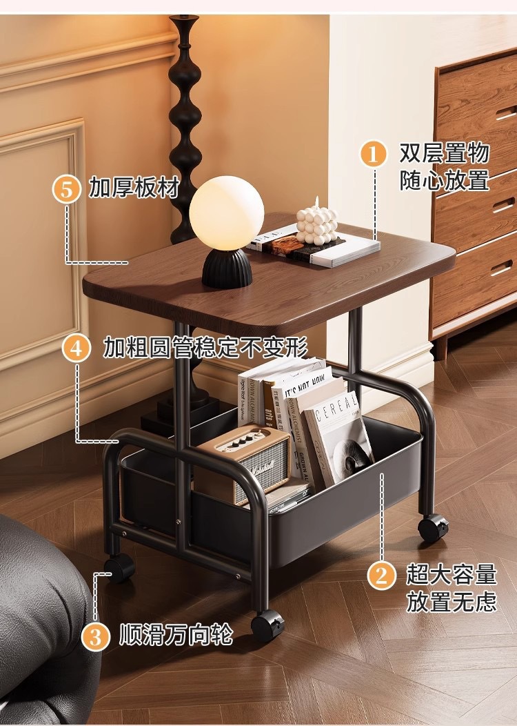 Передвижной двухъярусный кофейный столик, тумба для хранения, столик для дивана с колесиками, маленький столик