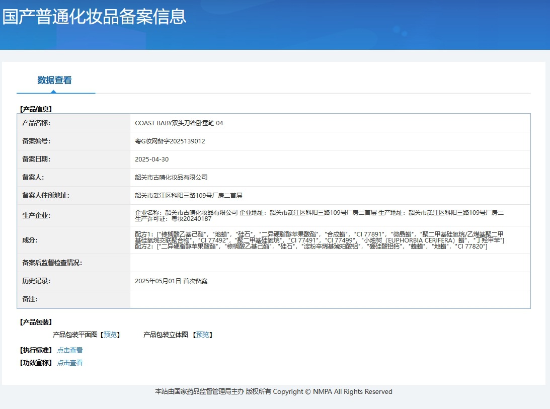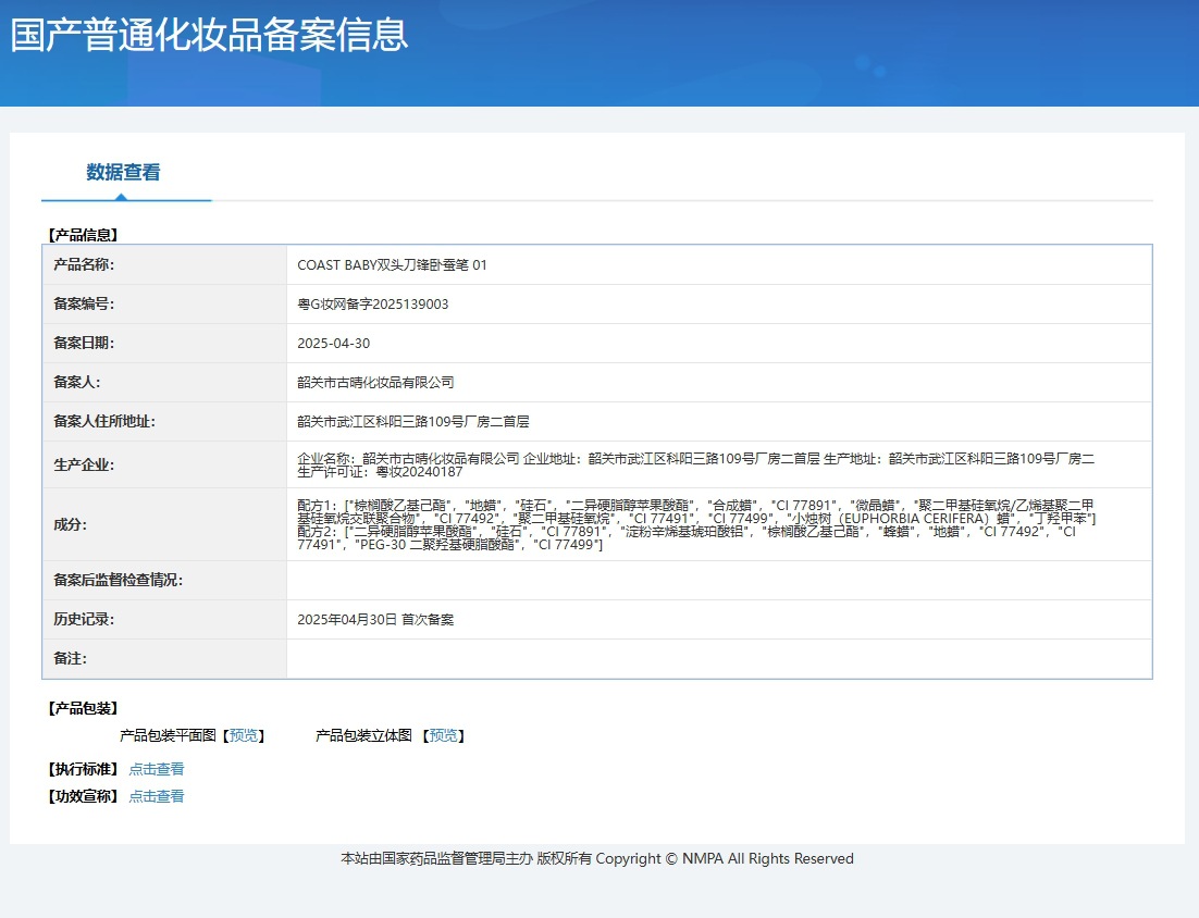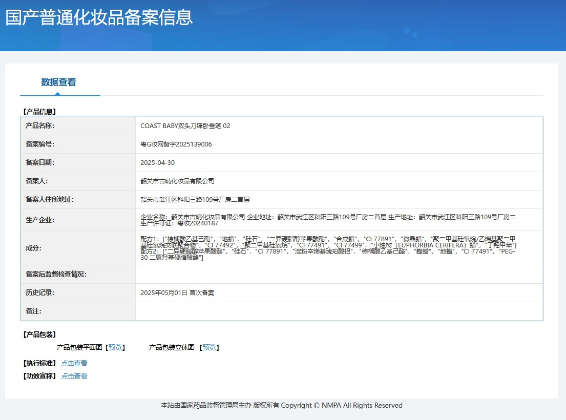 Non-special cosmetics registration certificate number Guangdong g makeup network preparation number 2025139003