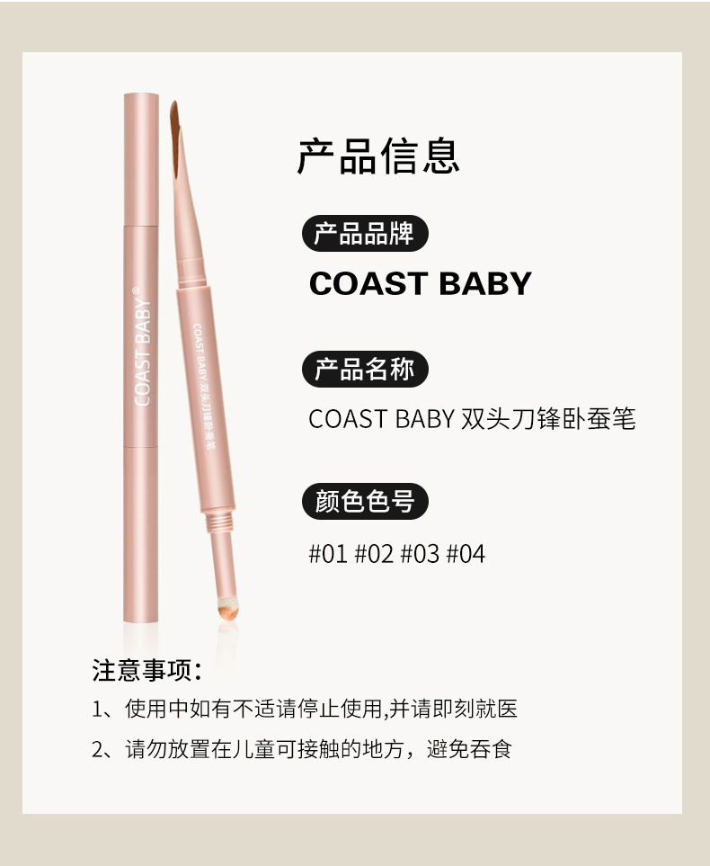 Coast Baby двусторонний карандаш с лезвием шелкопряда осветляющий два в одном высокоглянцевый блестящий карандаш для глаз и подводка