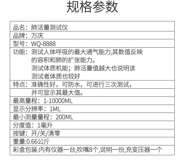 ![]() | Wanqing 8888 standard lung capacity tester | ¥75.0 / ≈ 906 ₽ | 985239 | 5989582087816 | |