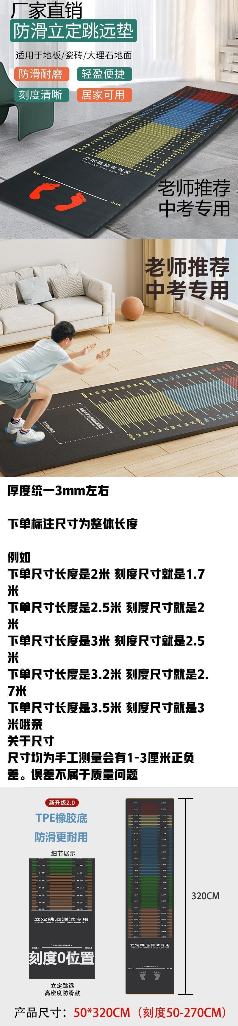 Специальный мат для теста на прыжок в длину, нескользящий, утолщенный, для физической подготовки