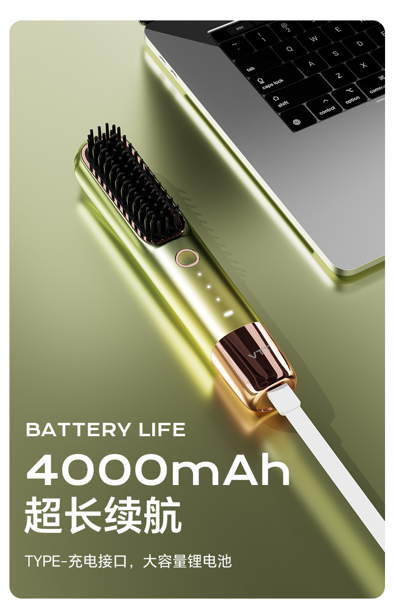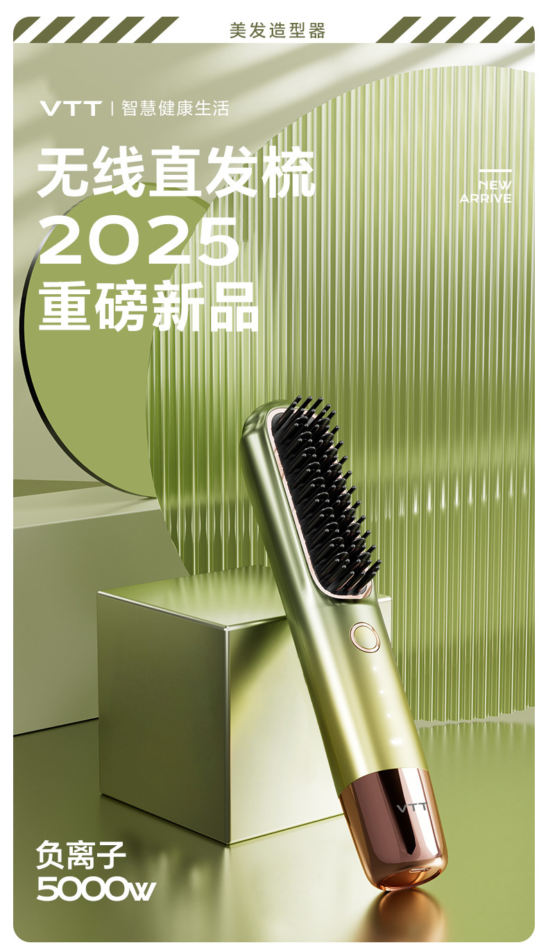 Беспроводная расческа для выпрямления волос VTT, отрицательные ионы, портативная