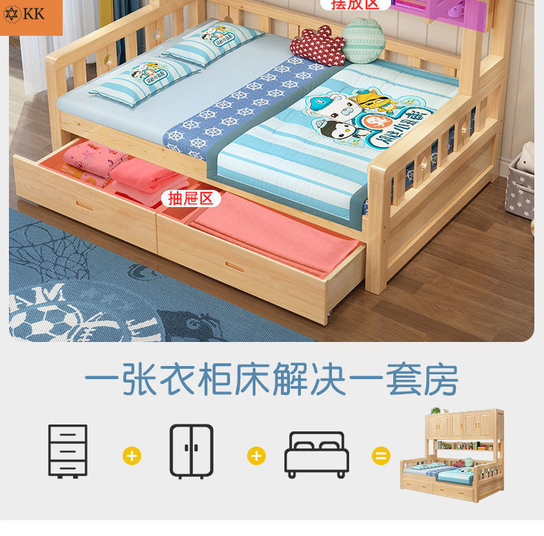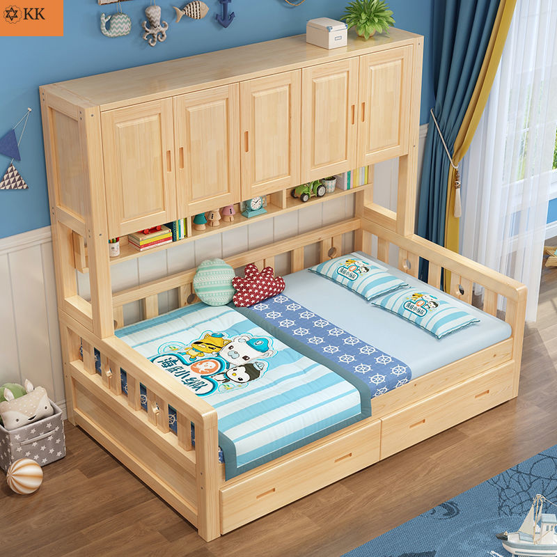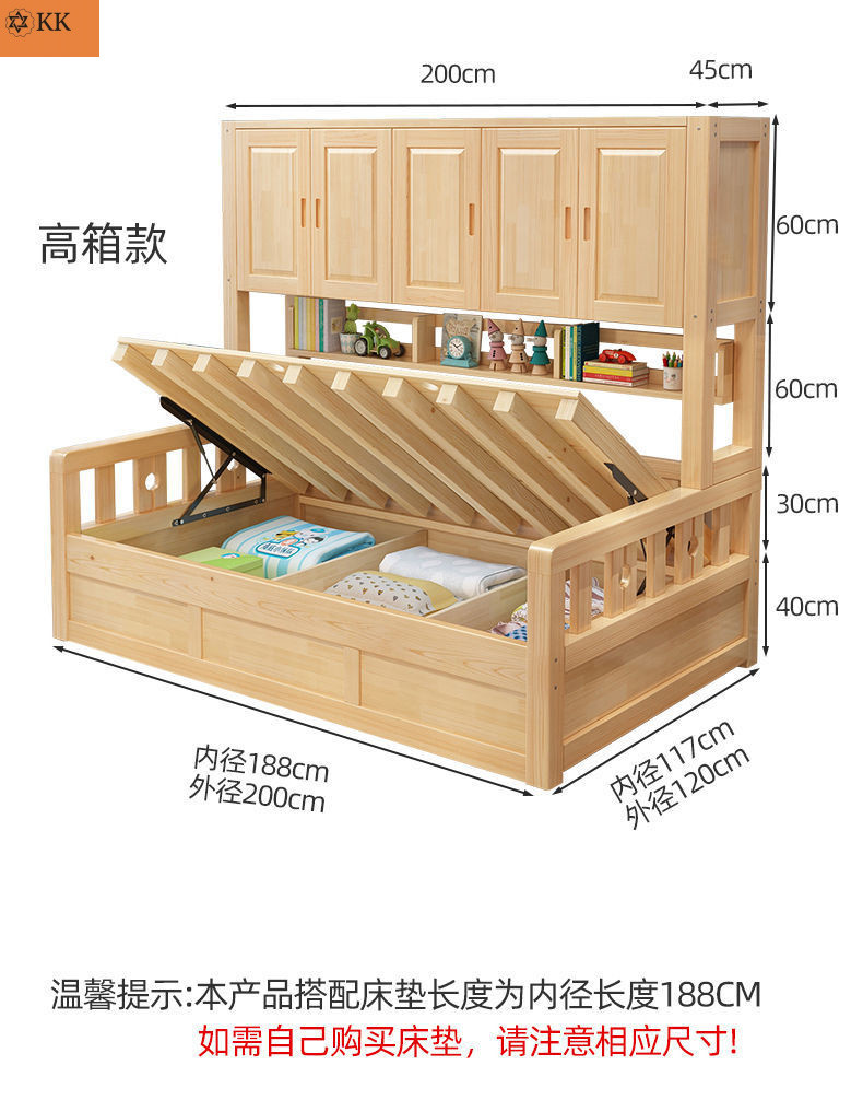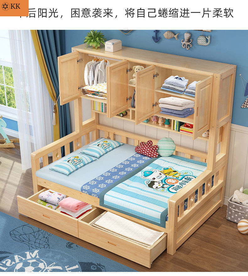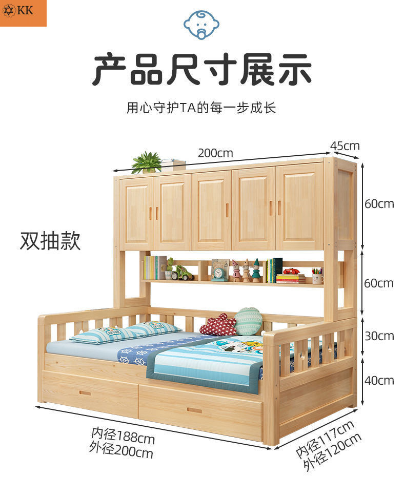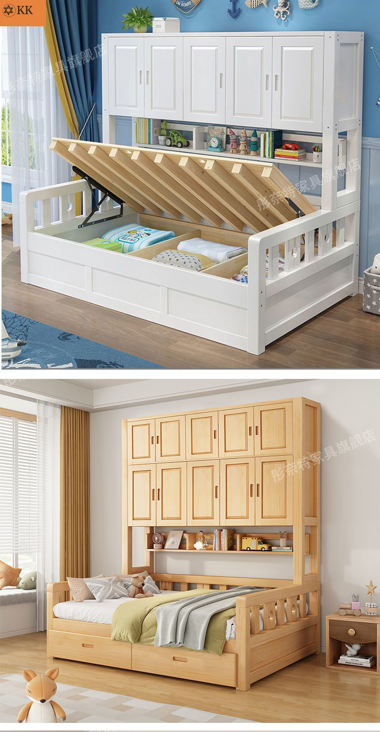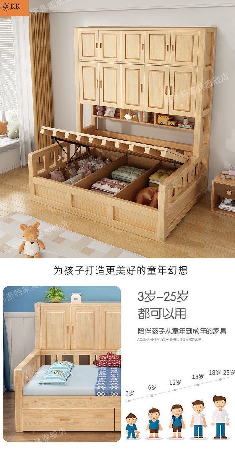 Детская кровать с шкафом Татами, многофункциональная комбинация, для маленькой квартиры, интегрированная кровать с гардеробом, массив дерева с шкафом