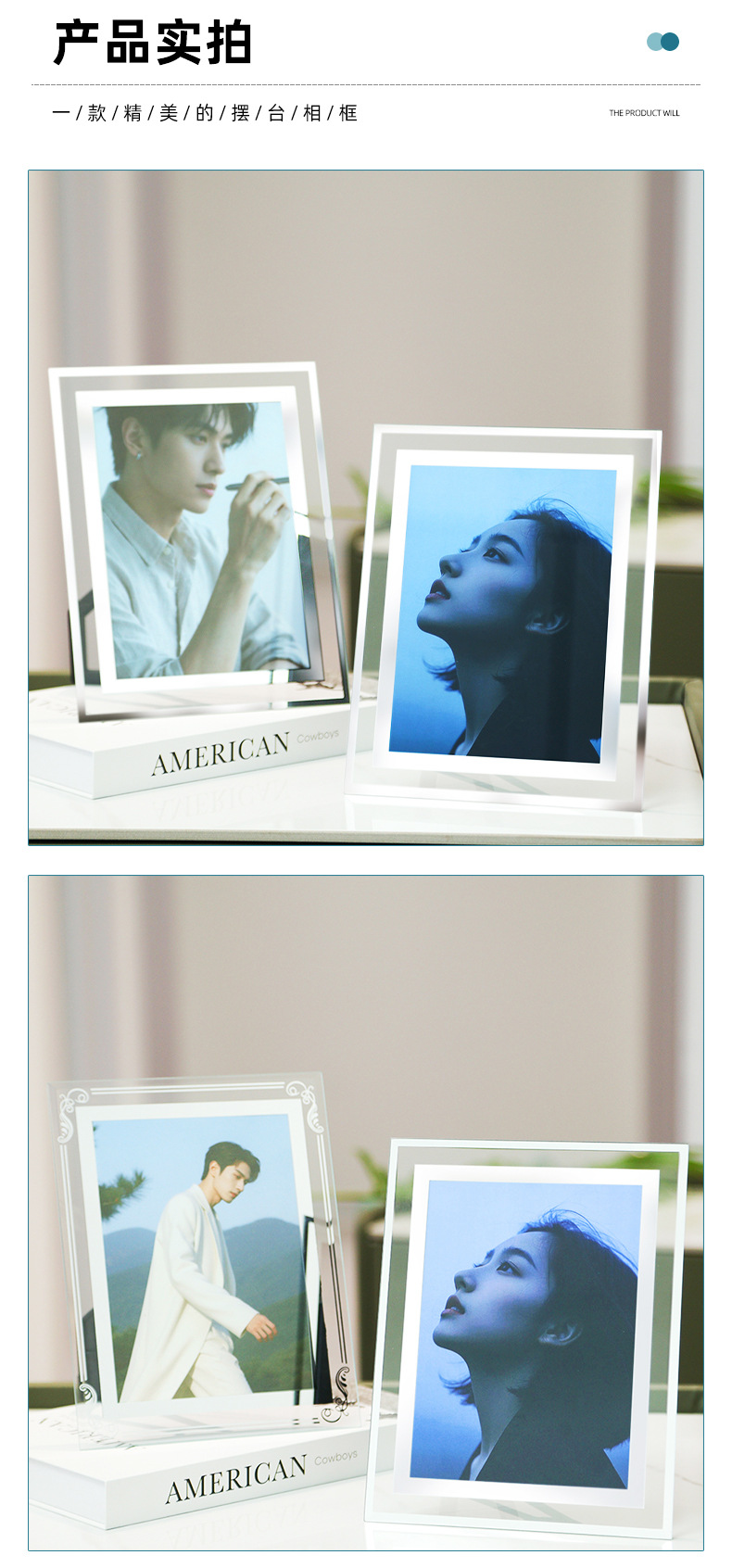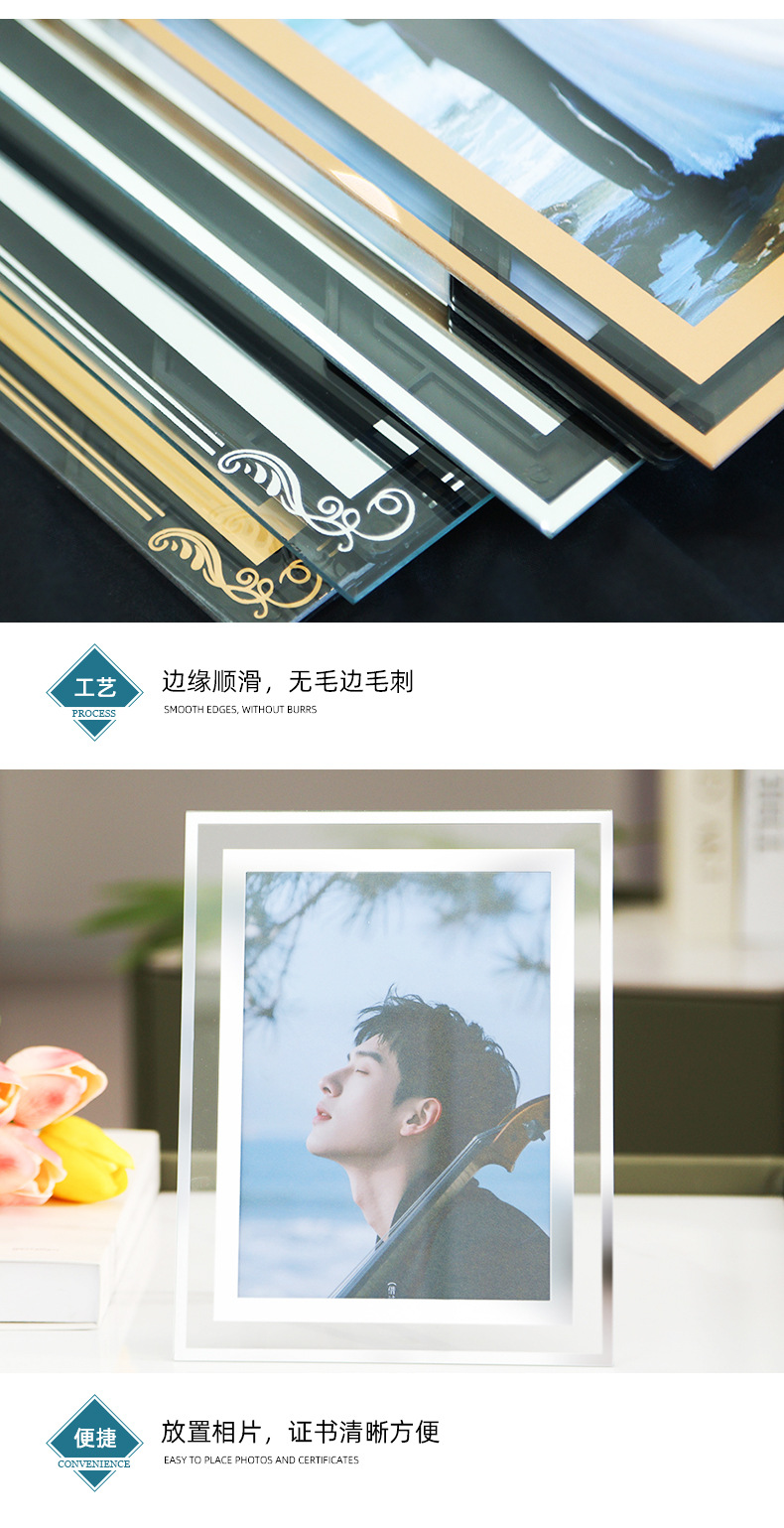 Кристальная стеклянная фоторамка, оптовая, фотостудия, рамка для отображения, настольная, двухцветная печать, семейная фоторамка