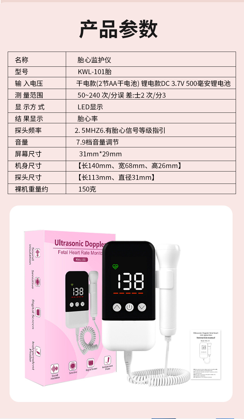 Список упаковки 1 lotus root agent, 1 fetal heart rate monitor, 1 instruction manual, and 1 packaging box
