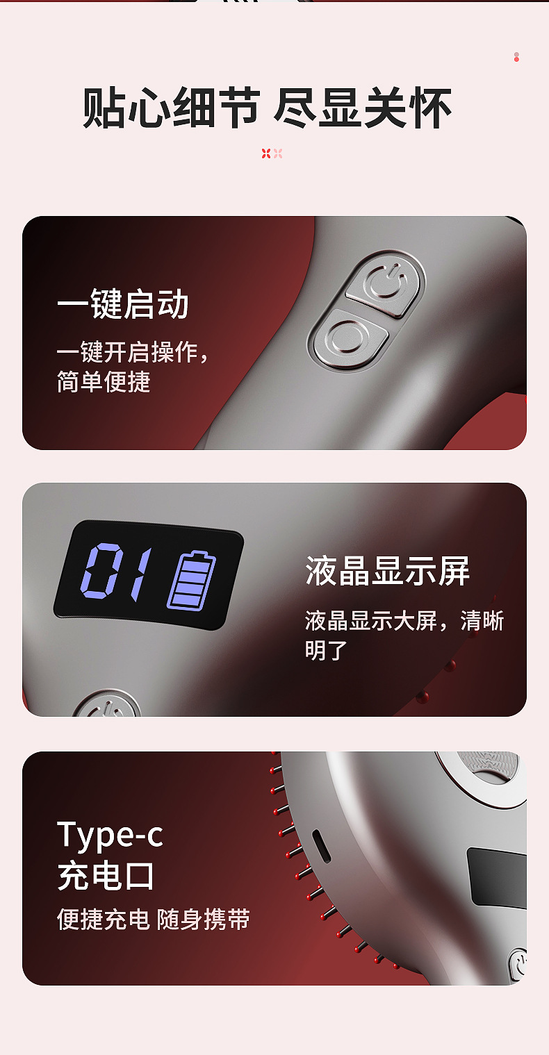 Электрическая массажная расческа для дома, красный свет, расческа для ухода за головой, распыляющая шапка для роста волос, вибрационное устройство для роста волос
