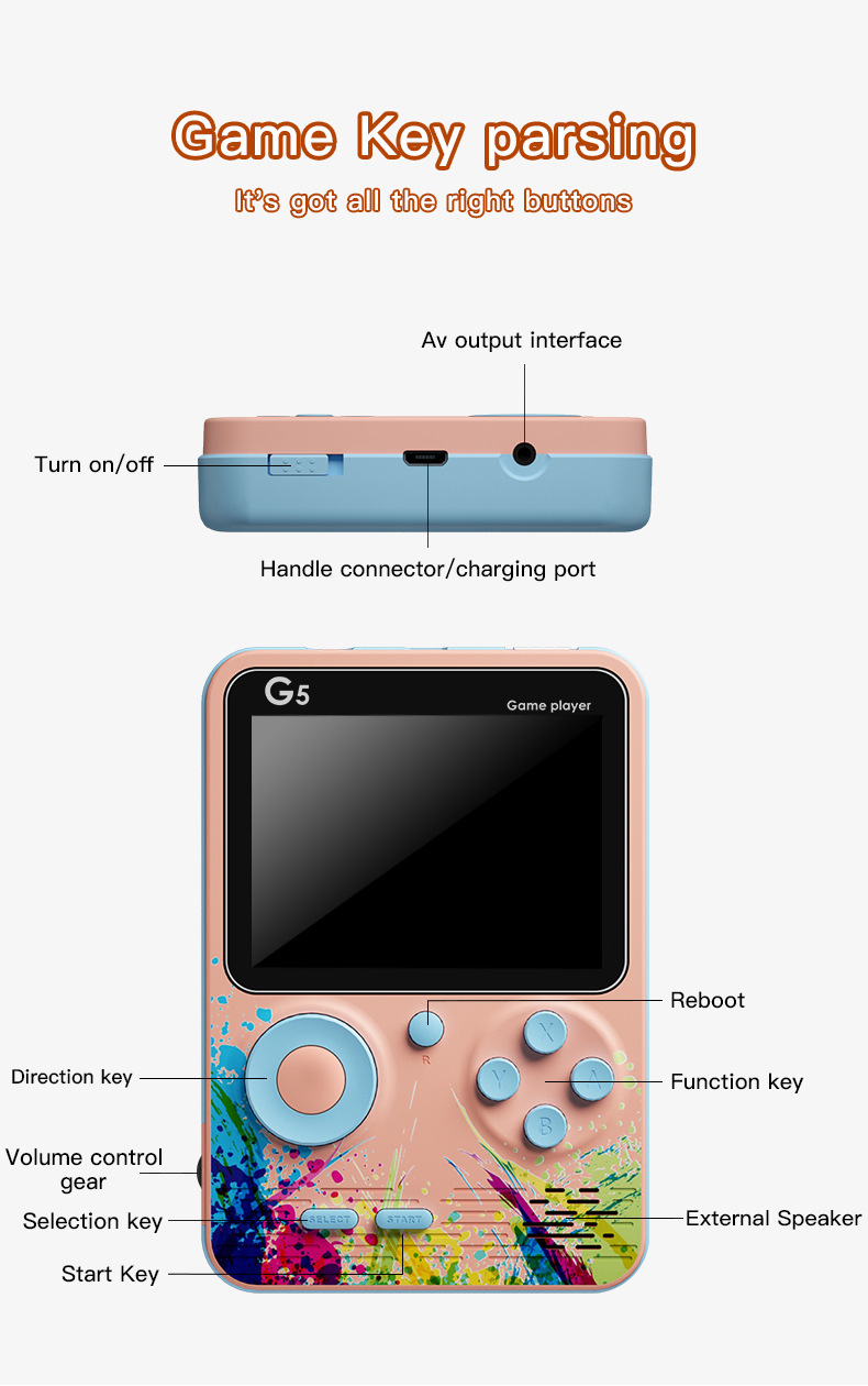 Кросс-бордерная новая игровая консоль G5, цветная макаронная консоль, 500-в-одном, цветной экран, ретро игрушка для детей
