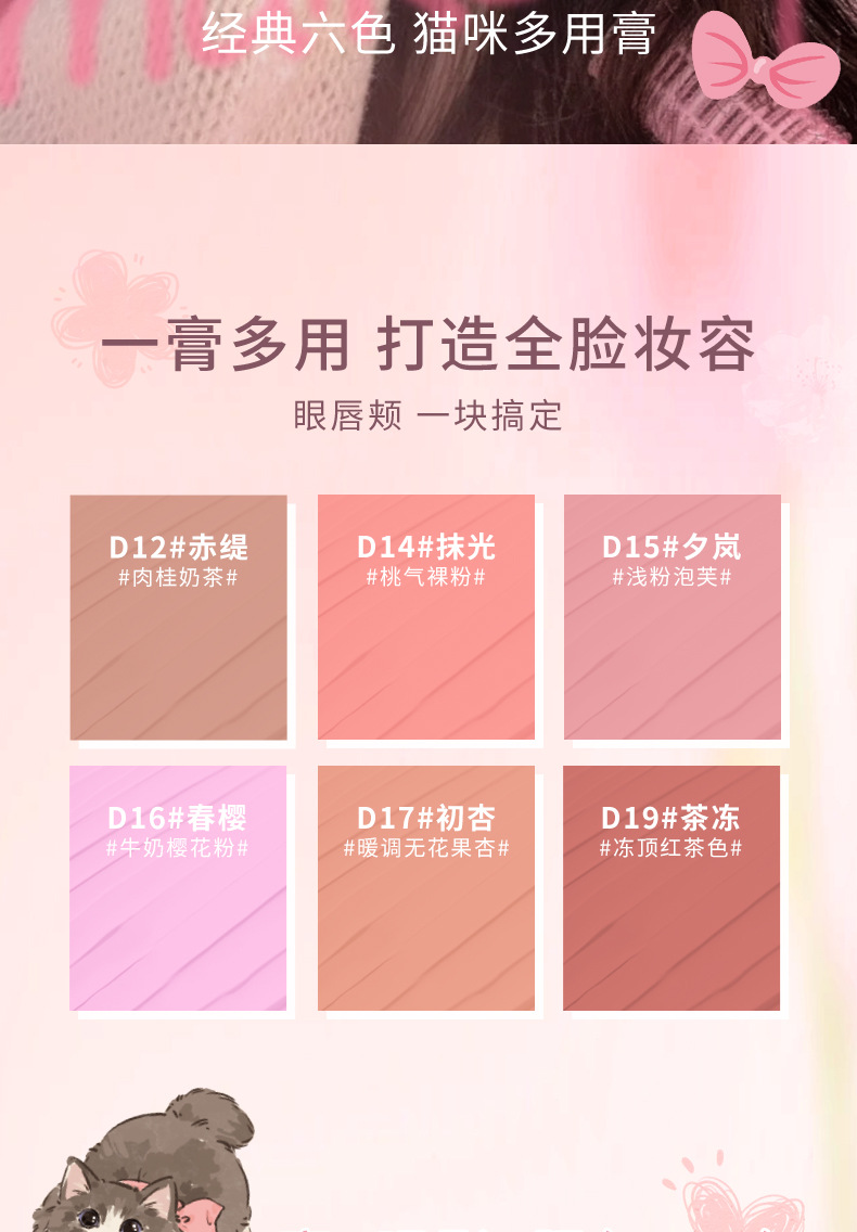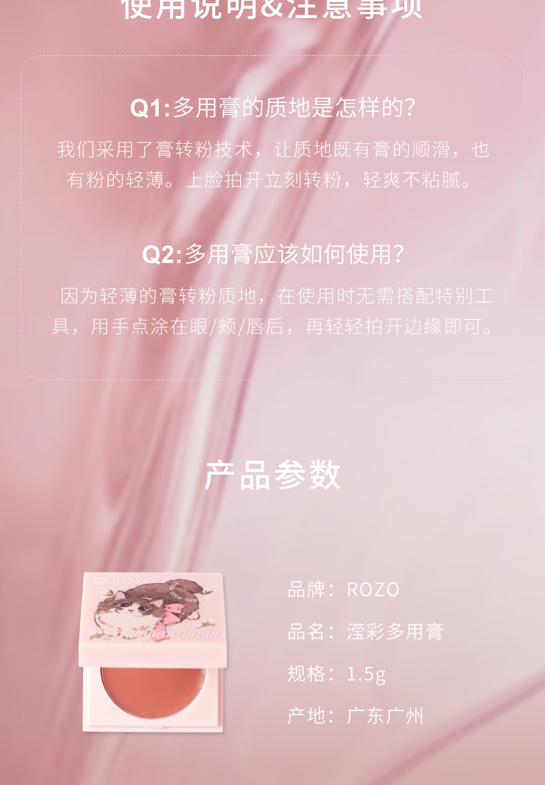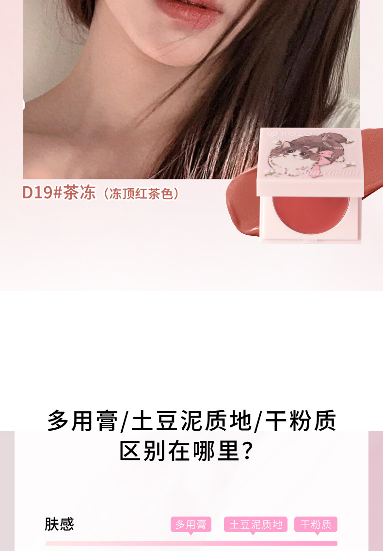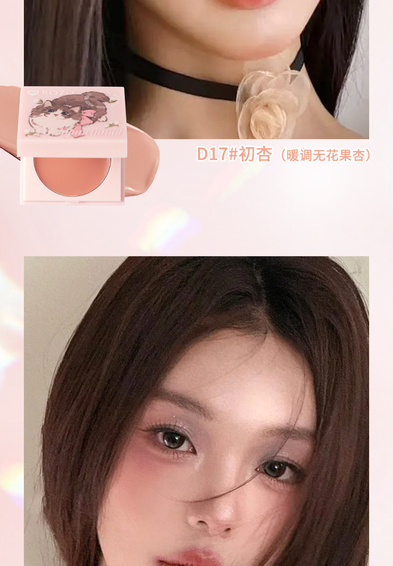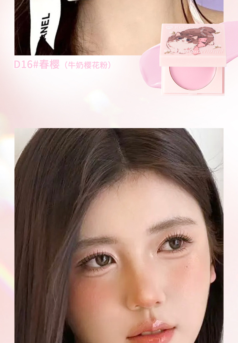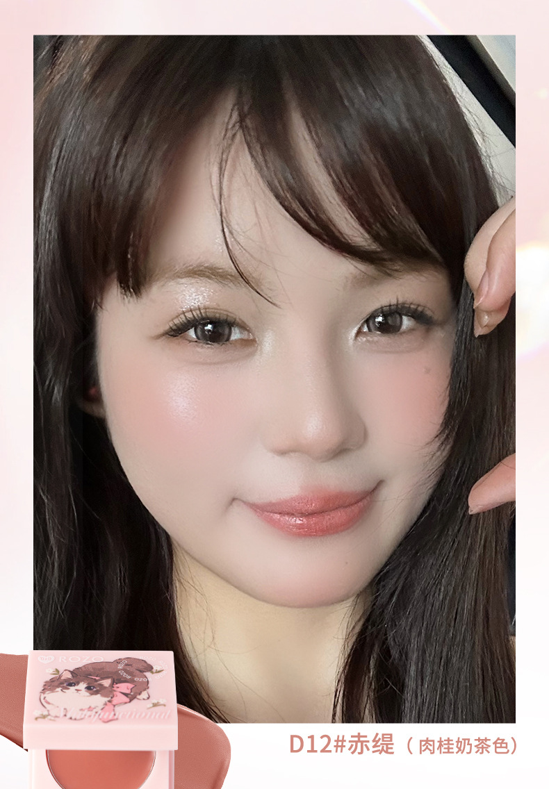 Rozo Розовая Кошка Многофункциональный Крем Увлажняющий Цвет Губ и Щек Румяна Три-в-Одном Осветляющий Естественный Отбеливающий