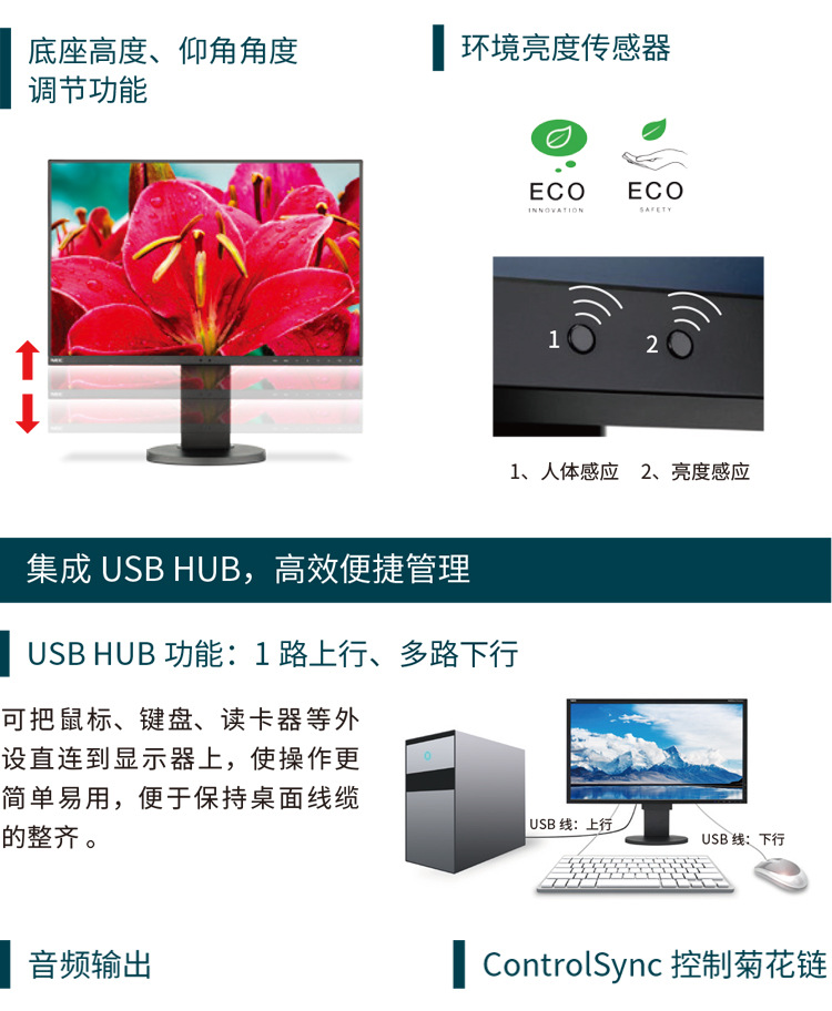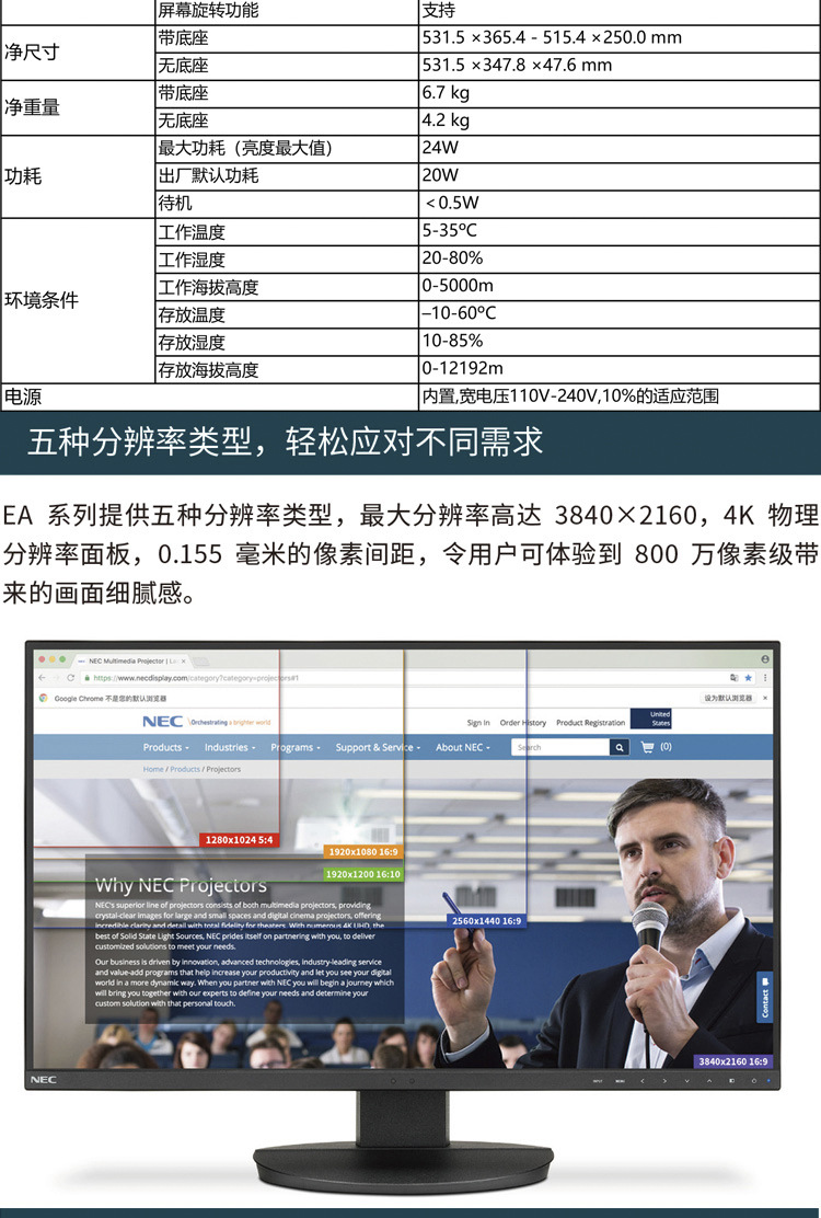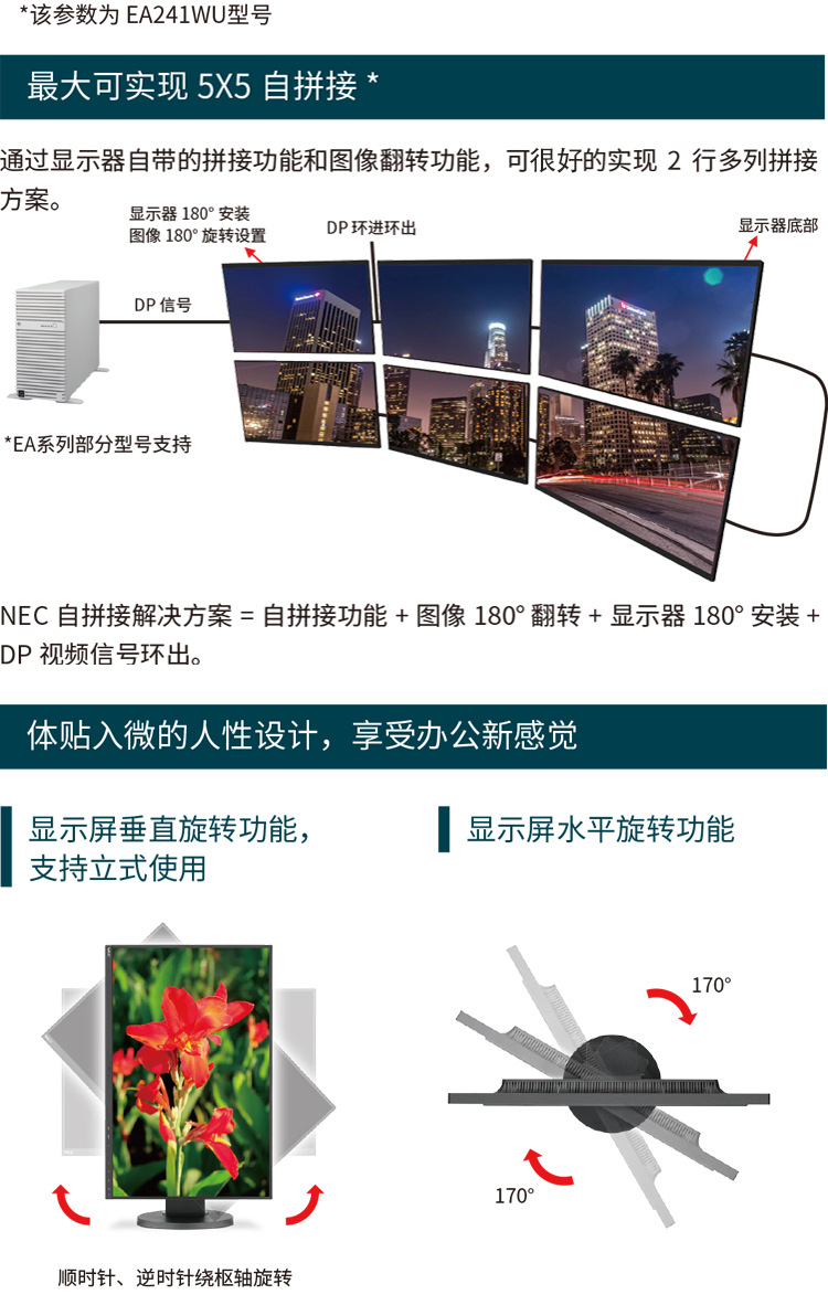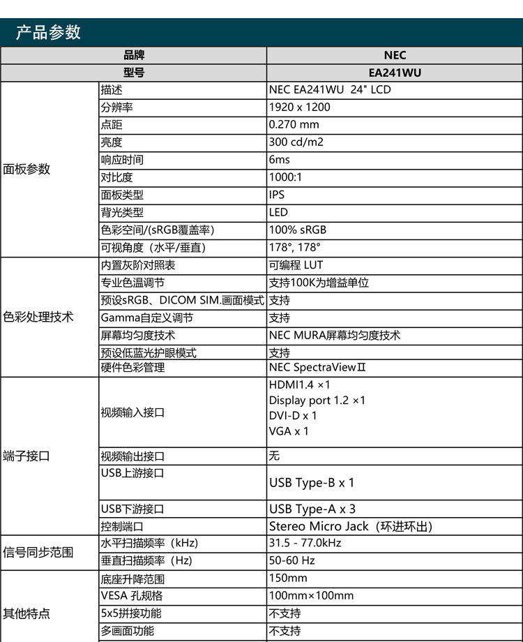 Nec Ea241Wu-Bk 24 дюйма 16:10 широкоформатный узкий край IPS панель поддерживает многомониторное соединение монитор для коммерческого использования