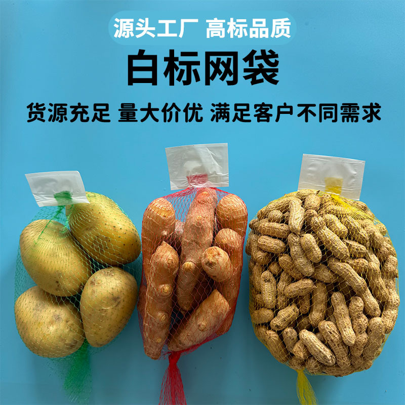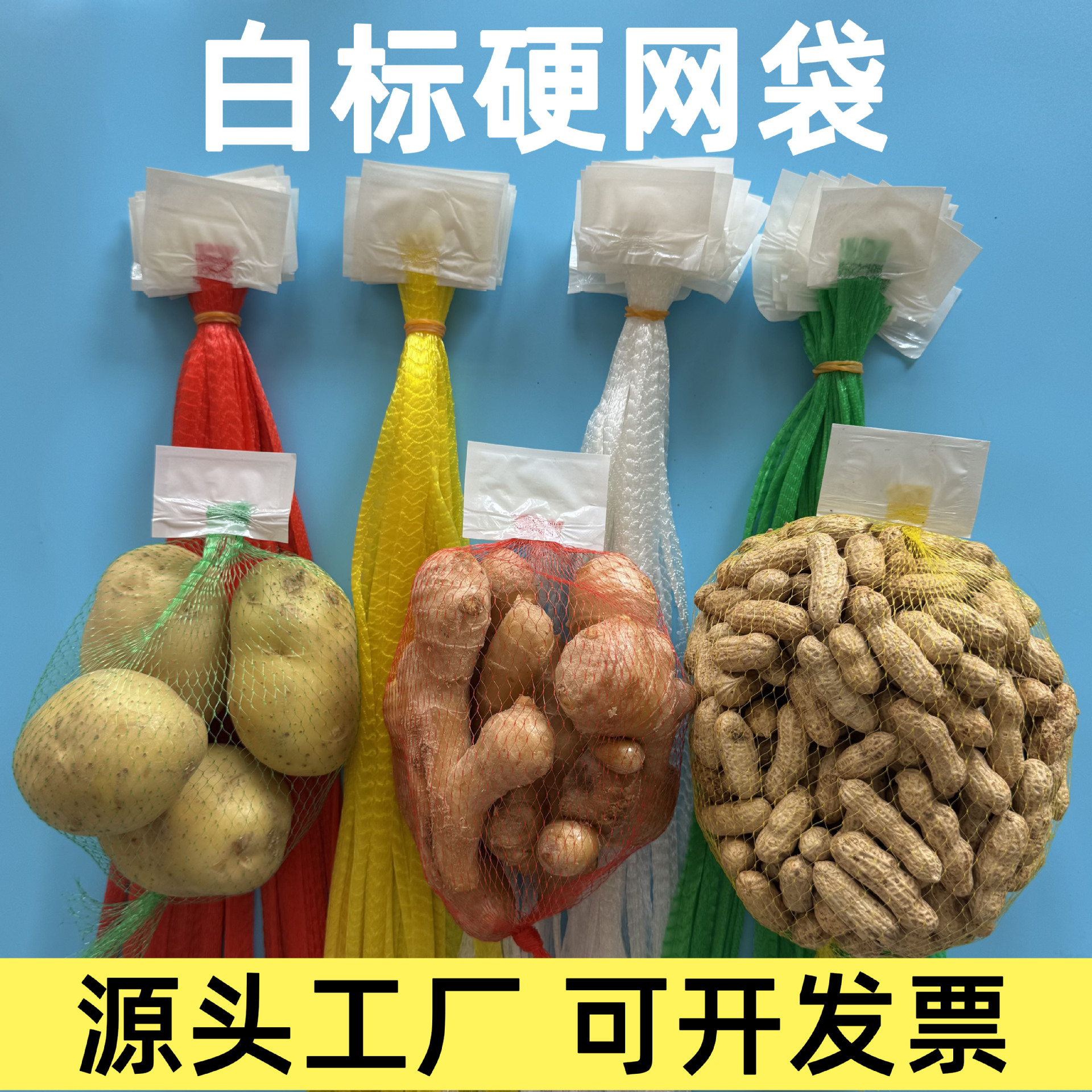 оптовая продажа различных цветных овощных упаковок, утолщенные грубые сетки, жесткий материал, пакет с большим отверстием, белая этикетка, сетчатый пакет