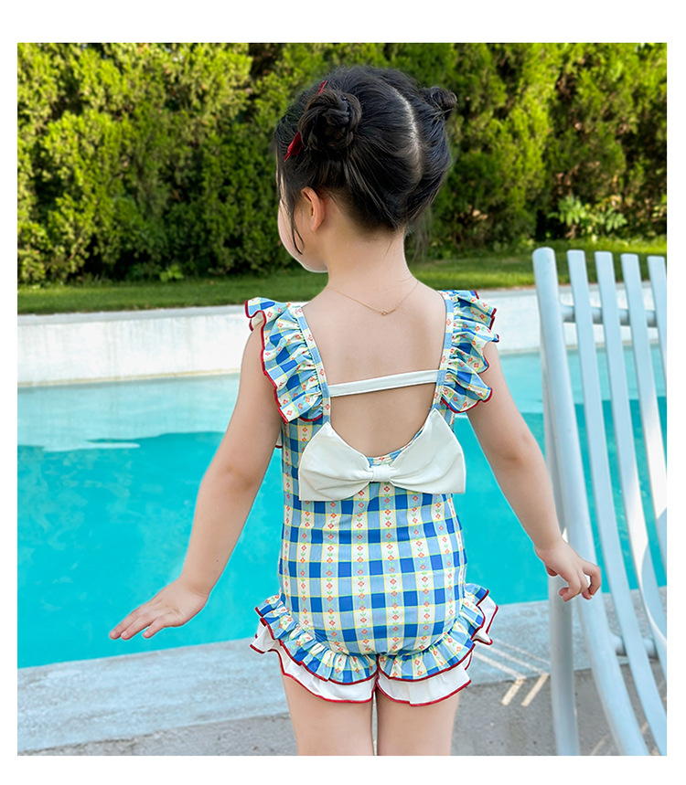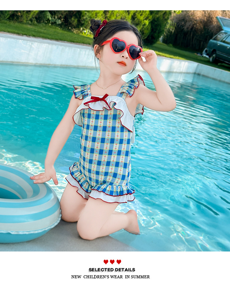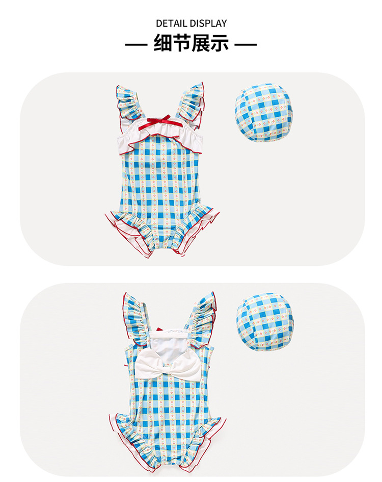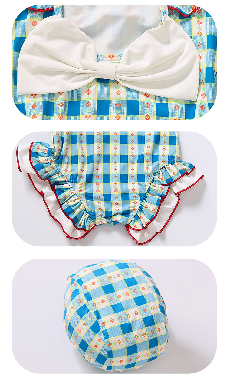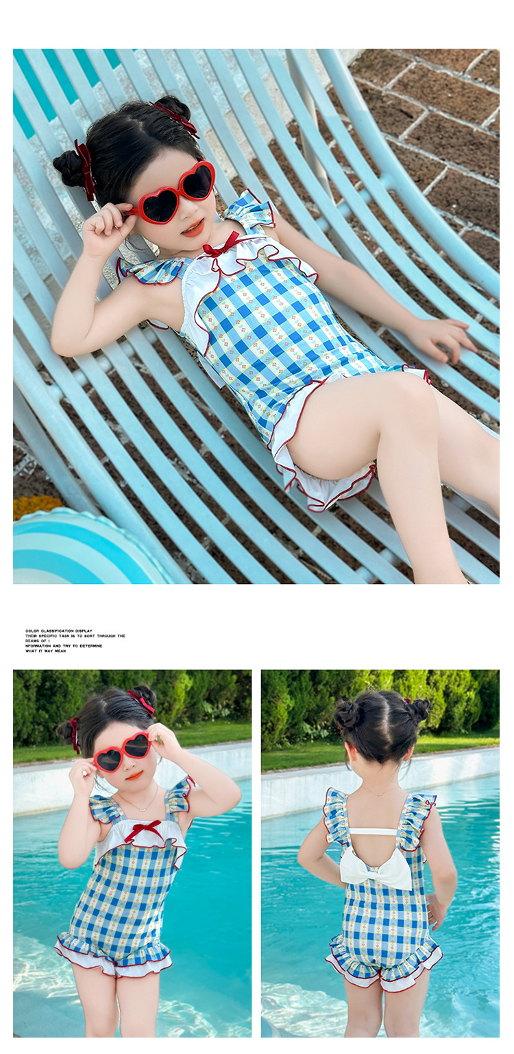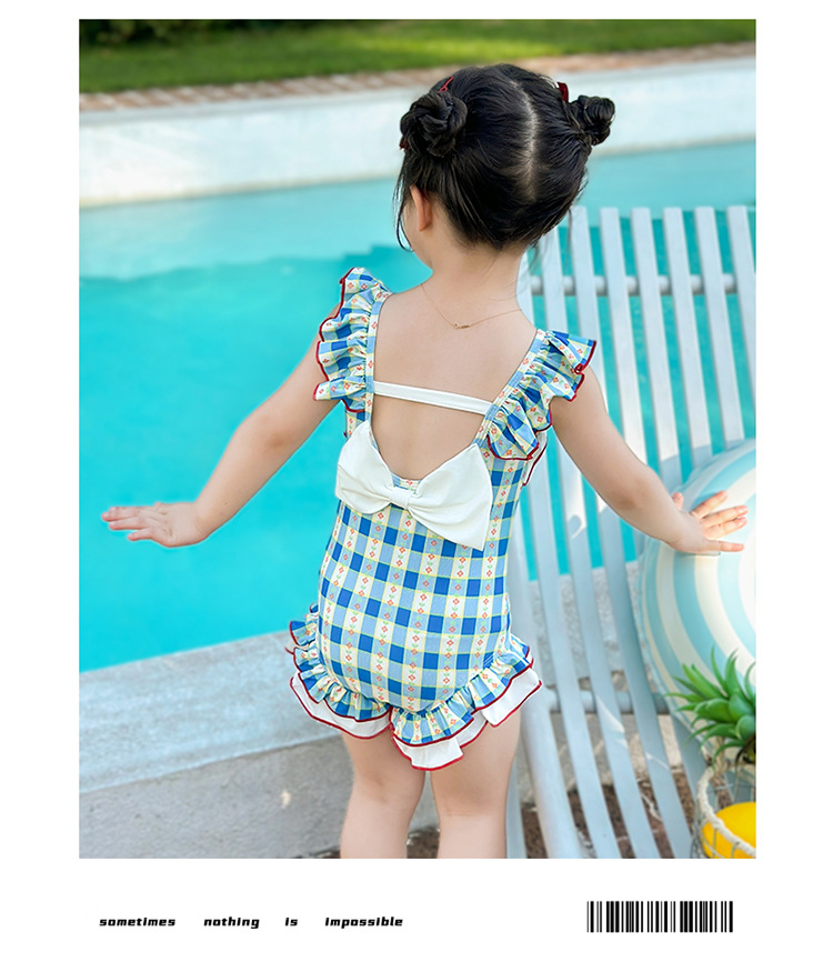 Купальник для девочек с бантом, синий и белый клетчатый, новый модный комбинезон для детей