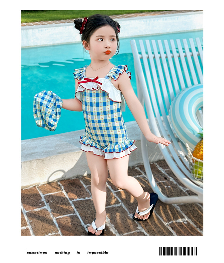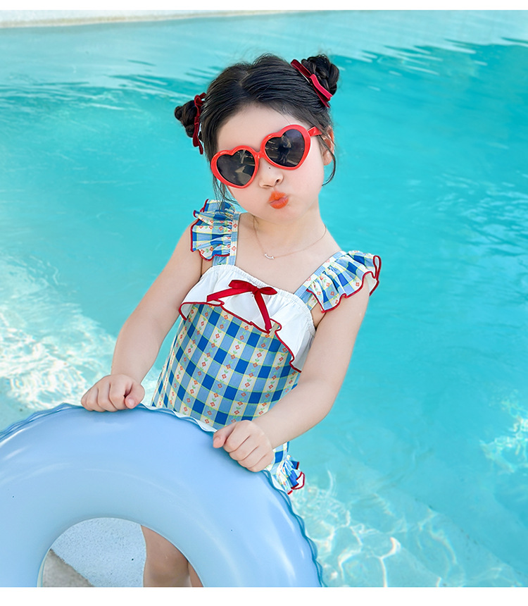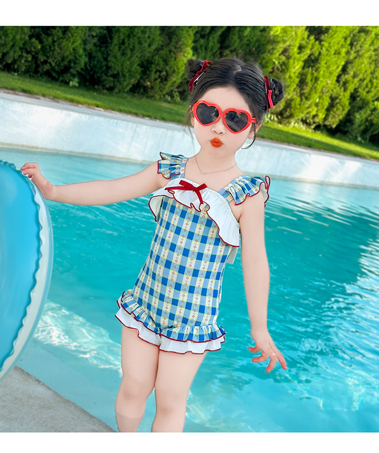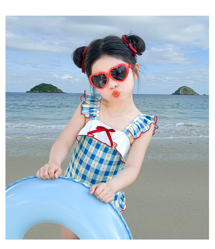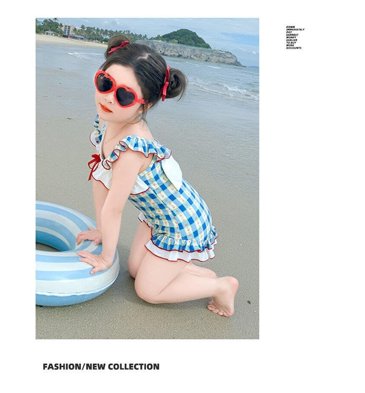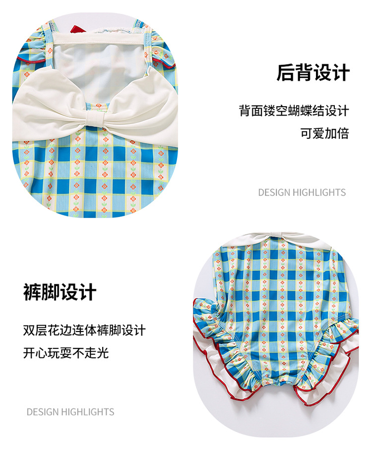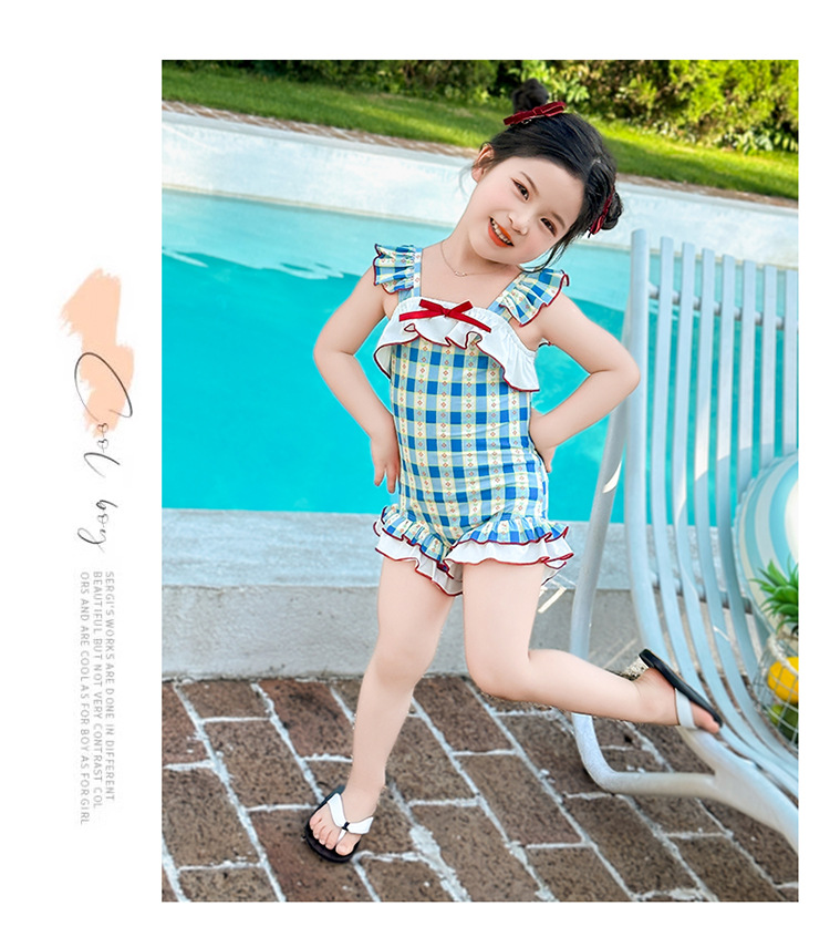 Купальник для девочек с бантом, синий и белый клетчатый, новый модный комбинезон для детей