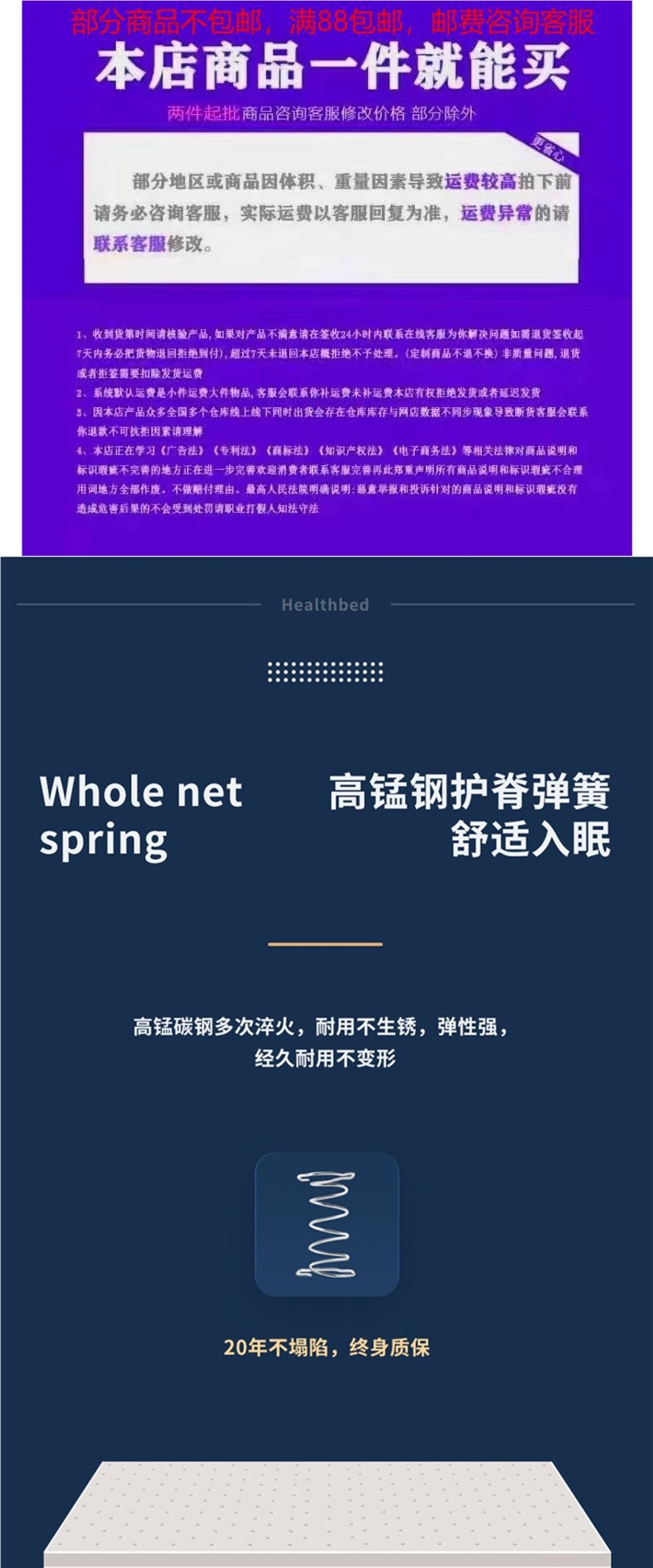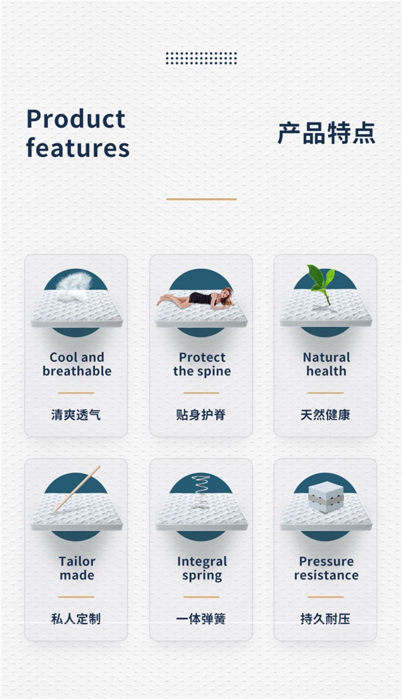 ![]() | Knitted fabric + stainless steel spring + 3e coconut palm, about 22cm hard spine protector | 1800mm*2000mm | ¥506.69 / ≈ 6 163 ₽ | 2954 | 5990723322884 | |