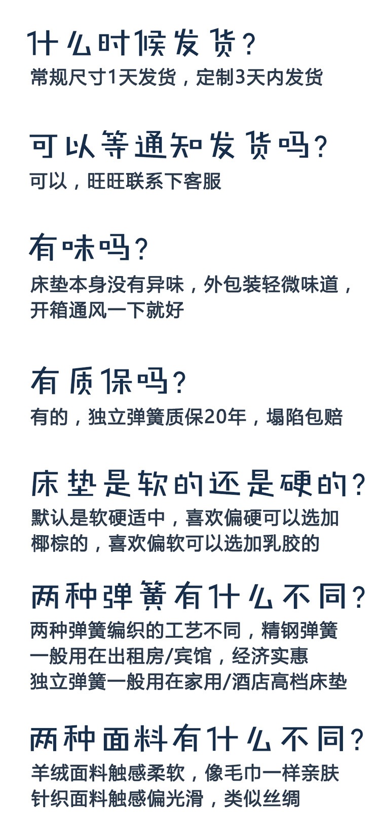 ![]() | Yunduo cashmere fabric + stainless steel spring, about 20cm, moderate softness and hardness | 1000mm*1900mm | ¥343.24 / ≈ 4 175 ₽ | 3000 | 5990723322936 | |