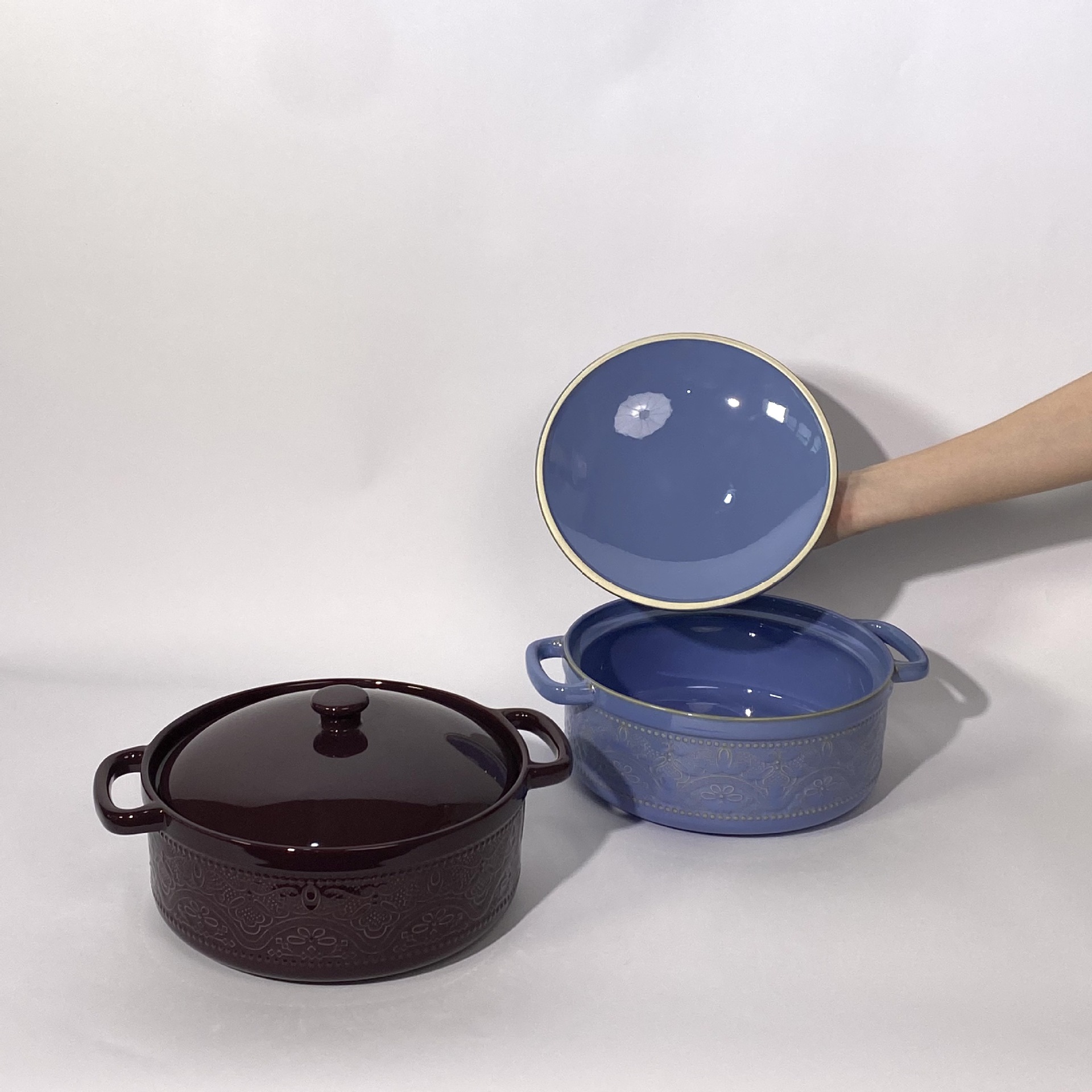 керамическая суповая кастрюля с двойными ручками, большая чаша для супа с крышкой