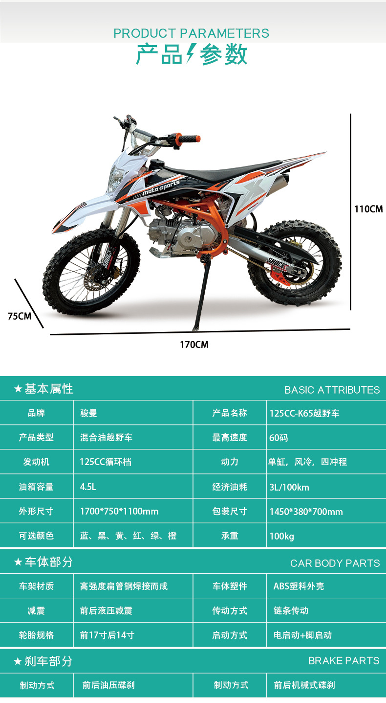Кастомизированный внедорожный мотоцикл K65 125Cc, двухколесный мотоцикл